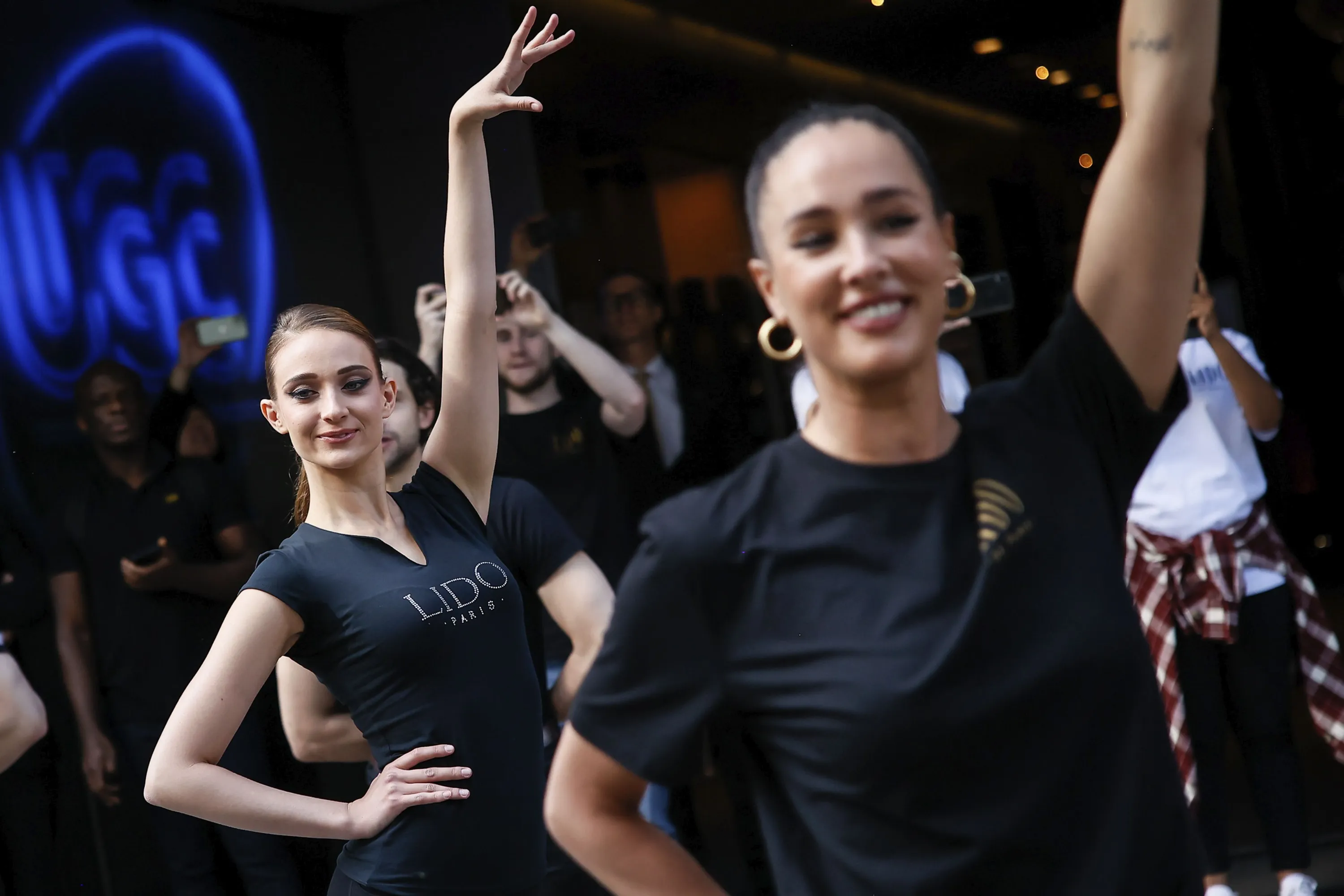 Lido cabaret dancers dance as they demonstrate to try to save their jobs and the history of the cabaret, known for its dinner theater and its “Bluebell Girls” revue, Saturday, May 28, 2022 in Paris. Amid financial troubles and changing times, the venue's new corporate owner is ditching most of the Lido's staff and its high-kicking, high-glamour dance shows – which date back decades and inspired copycats from Las Vegas to Beirut – in favor of more modest musical revues. (Photo by Thomas Padilla/AP Photo)