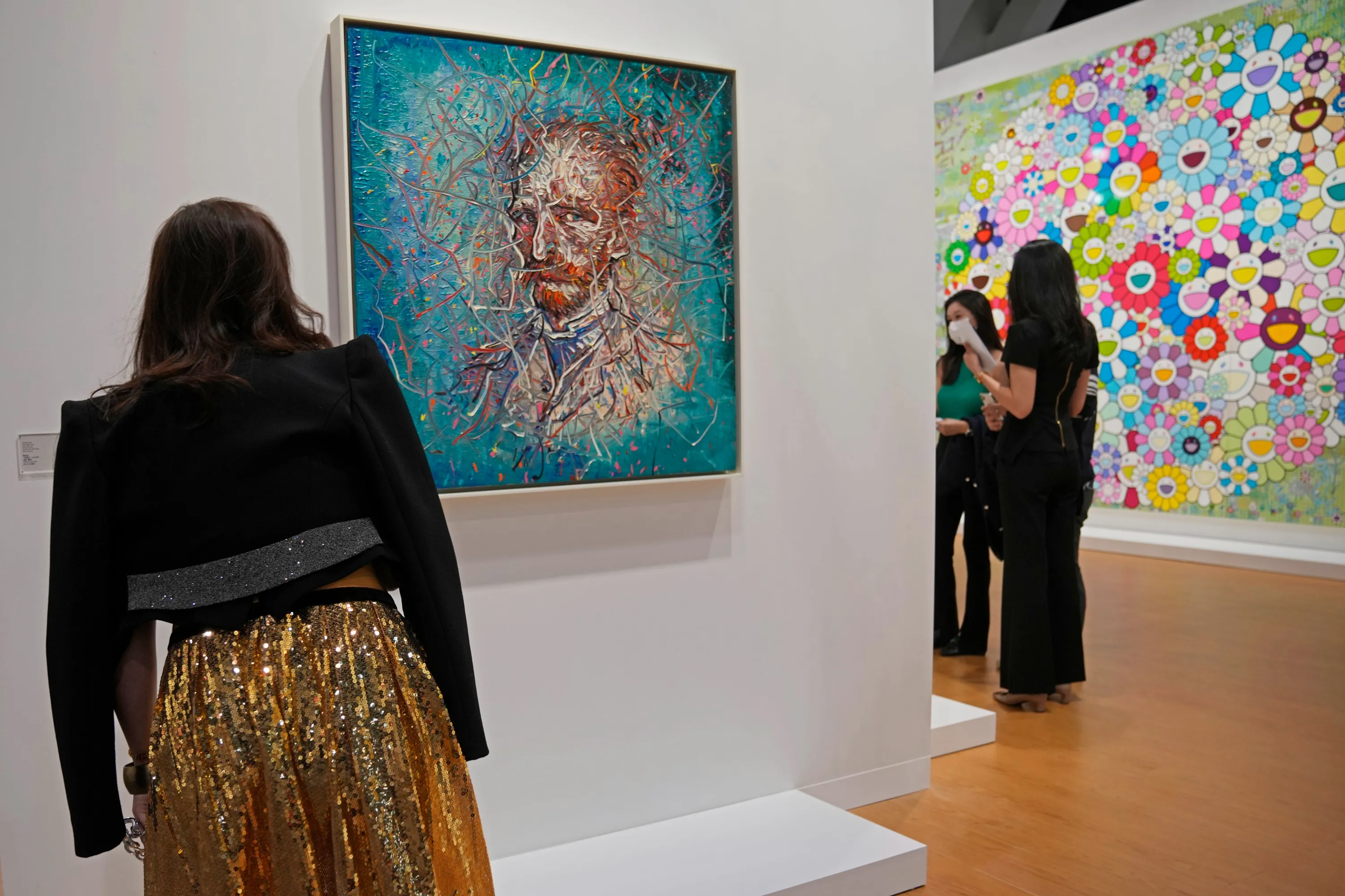 A painting titled “Van Gogh”, left, created by Chinese artist Zeng Fanzhi, is displayed at the Art Basel in Hong Kong, Wednesday, May 25, 2022. Art Basel is one of the world's most prestigious modern and contemporary art exhibitions. (Photo by Kin Cheung/AP Photo)
