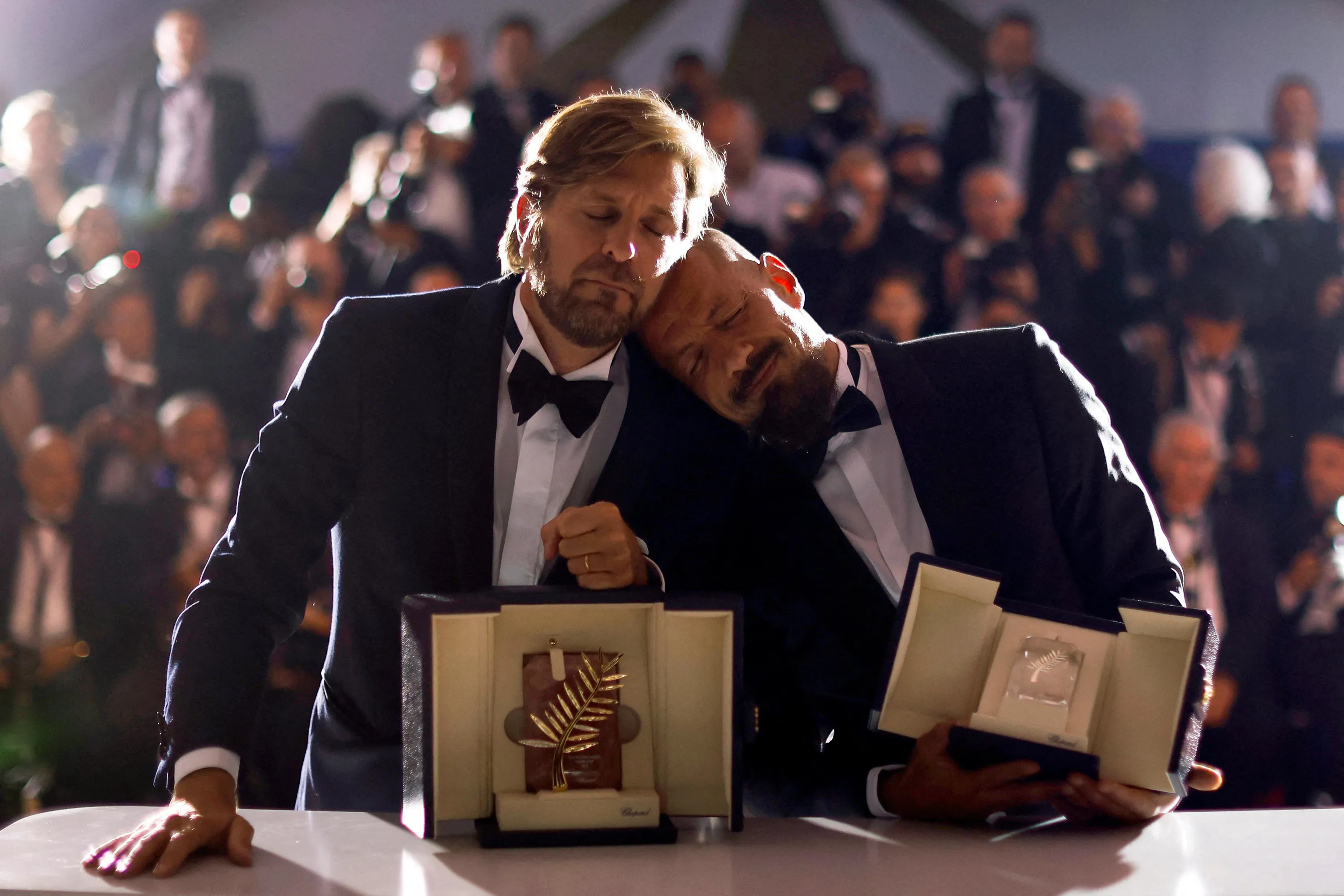 Swedish film director Ruben Ostlund (L) poses with Swedish director Tarik Saleh during a photocall after they respectively won the Palme d'Or for the film “Triangle of Sadness” and the Best Screenplay prize for the film “Boy From Heaven (Walad Min Al Janna)” during the closing ceremony of the 75th edition of the Cannes Film Festival in Cannes, southern France, on May 28, 2022. (Photo by Stephane Mahe/Reuters)