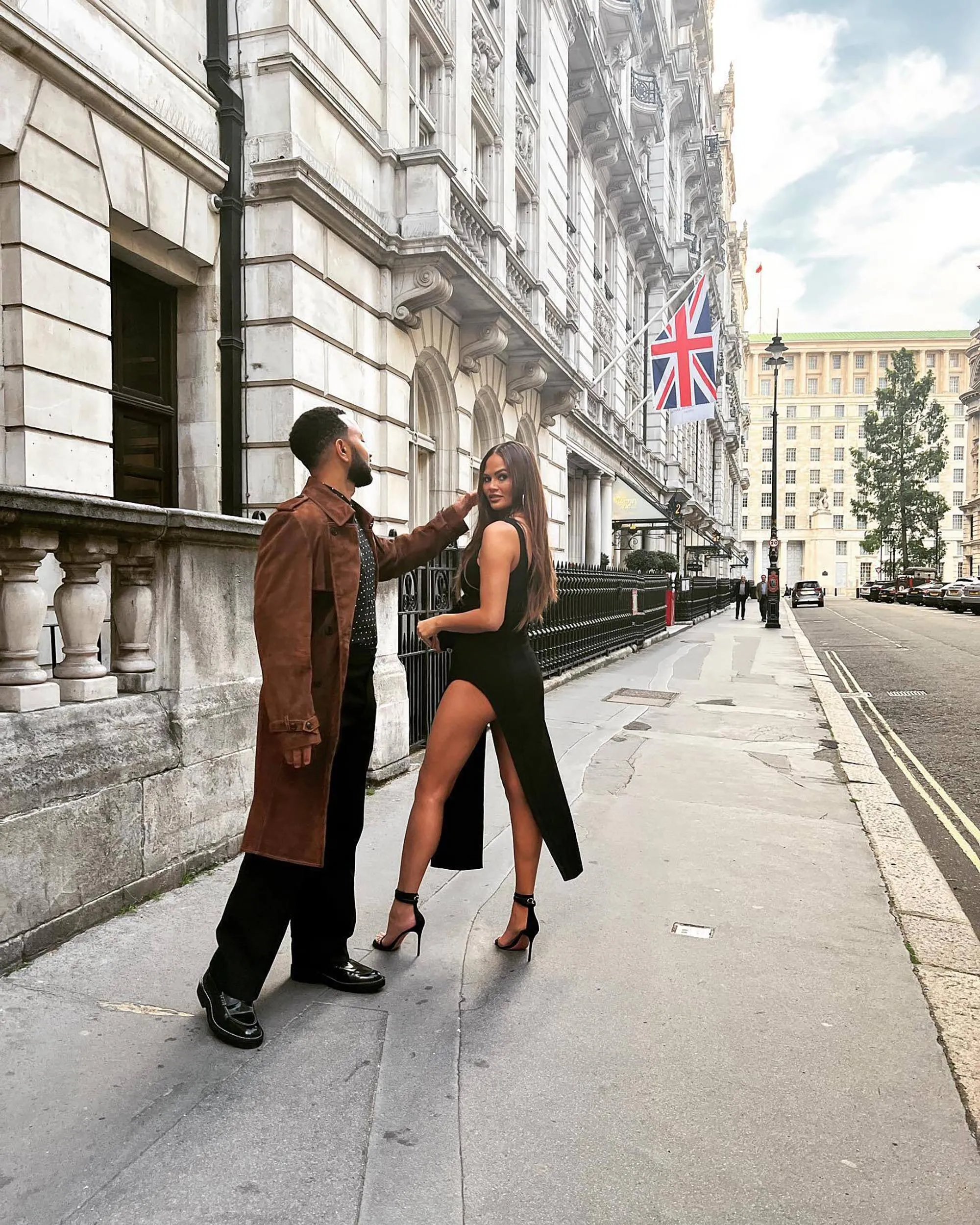 American singer-songwriter John Legend and American model and television personality Chrissy Teigen give a leggy look in London on May 23, 2022. (Photo by chrissyteigen/Instagram)
