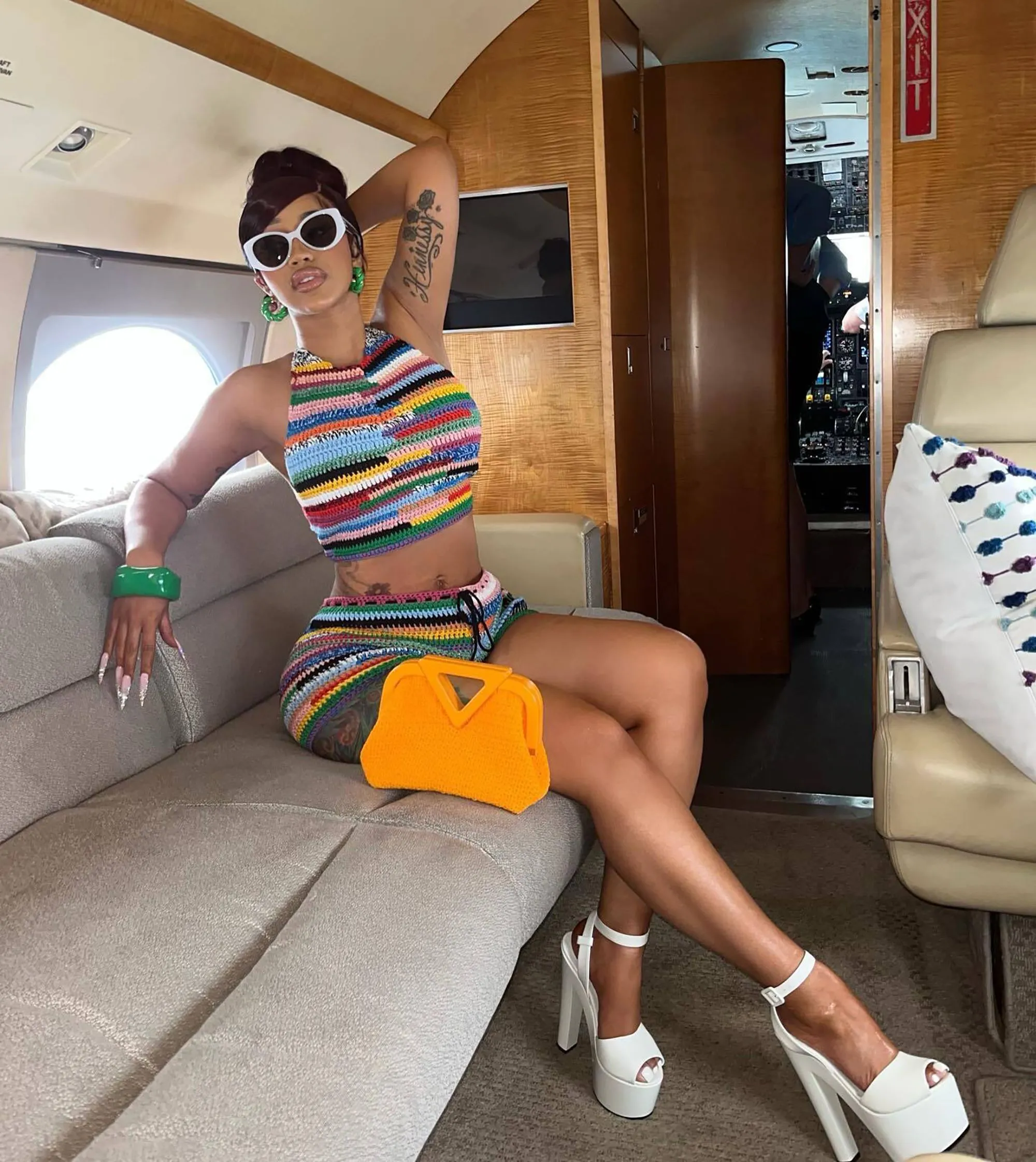 American rapper Belcalis Marlenis Almánzar, known professionally as Cardi B has a mini photo shoot on a private jet in the last decade of May 2022. (Photo by iamcardib/Instagram)