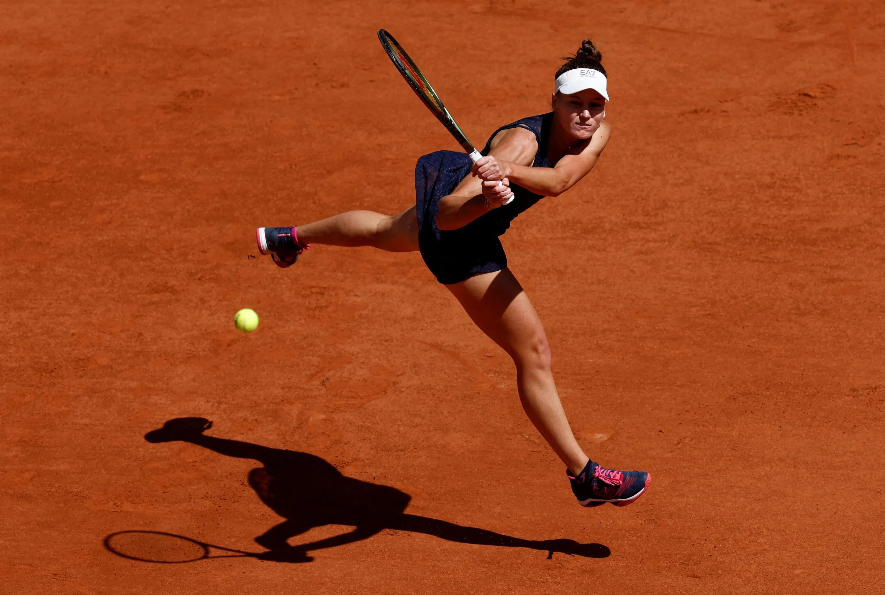 Russia's Veronika Kudermetova serves to US' Madison Keys during their women's singles match on day nine of the Roland-Garros Open tennis tournament at the Court Philippe-Chatrier in Paris on May 30, 2022. (Photo by Yves Herman/Reuters)