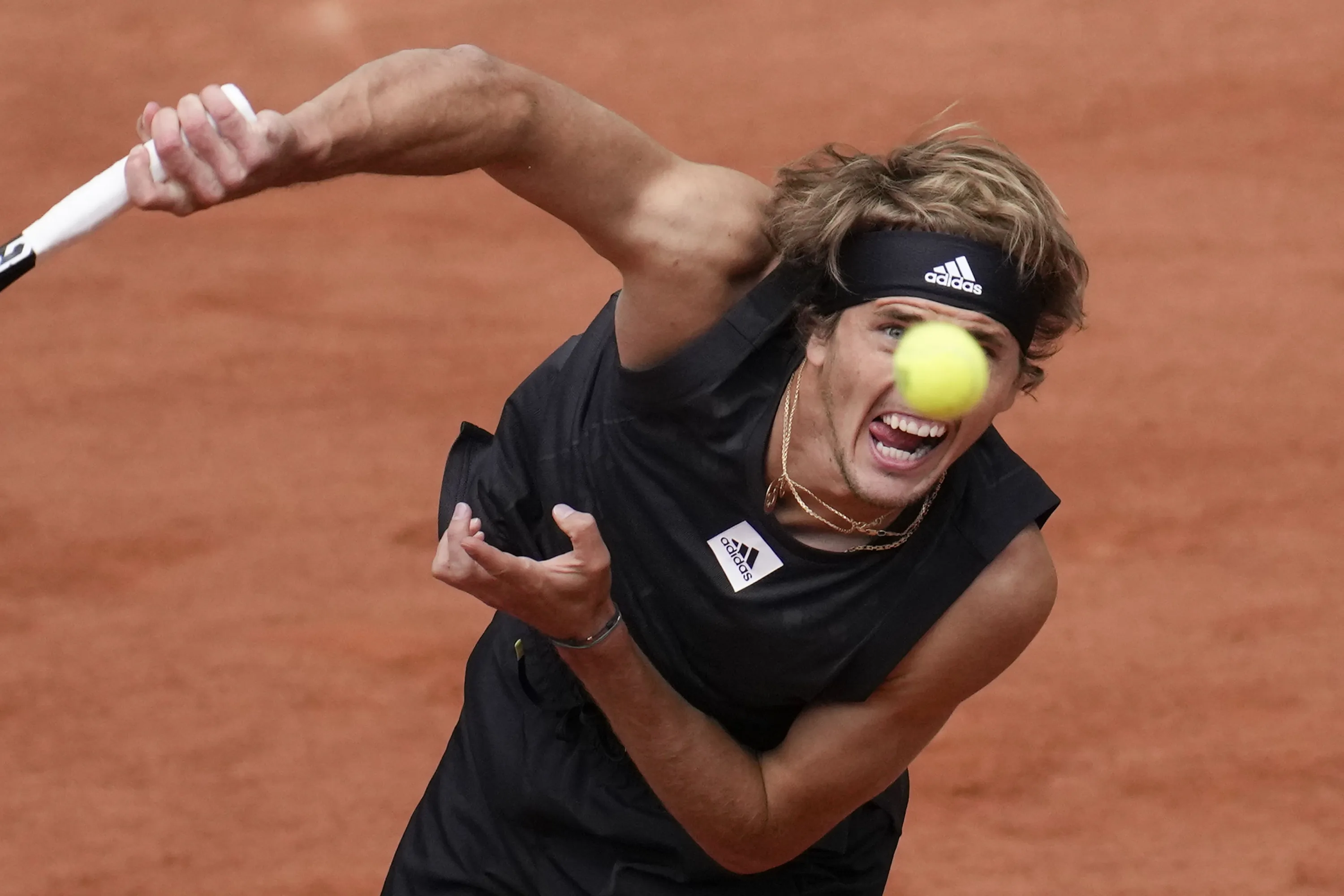 Germany's Alexander Zverev serves against Argentina's Sebastian Baez during their second round match at the French Open tennis tournament in Roland Garros stadium in Paris, France, Wednesday, May 25, 2022. (Photo by Christophe Ena/AP Photo)
