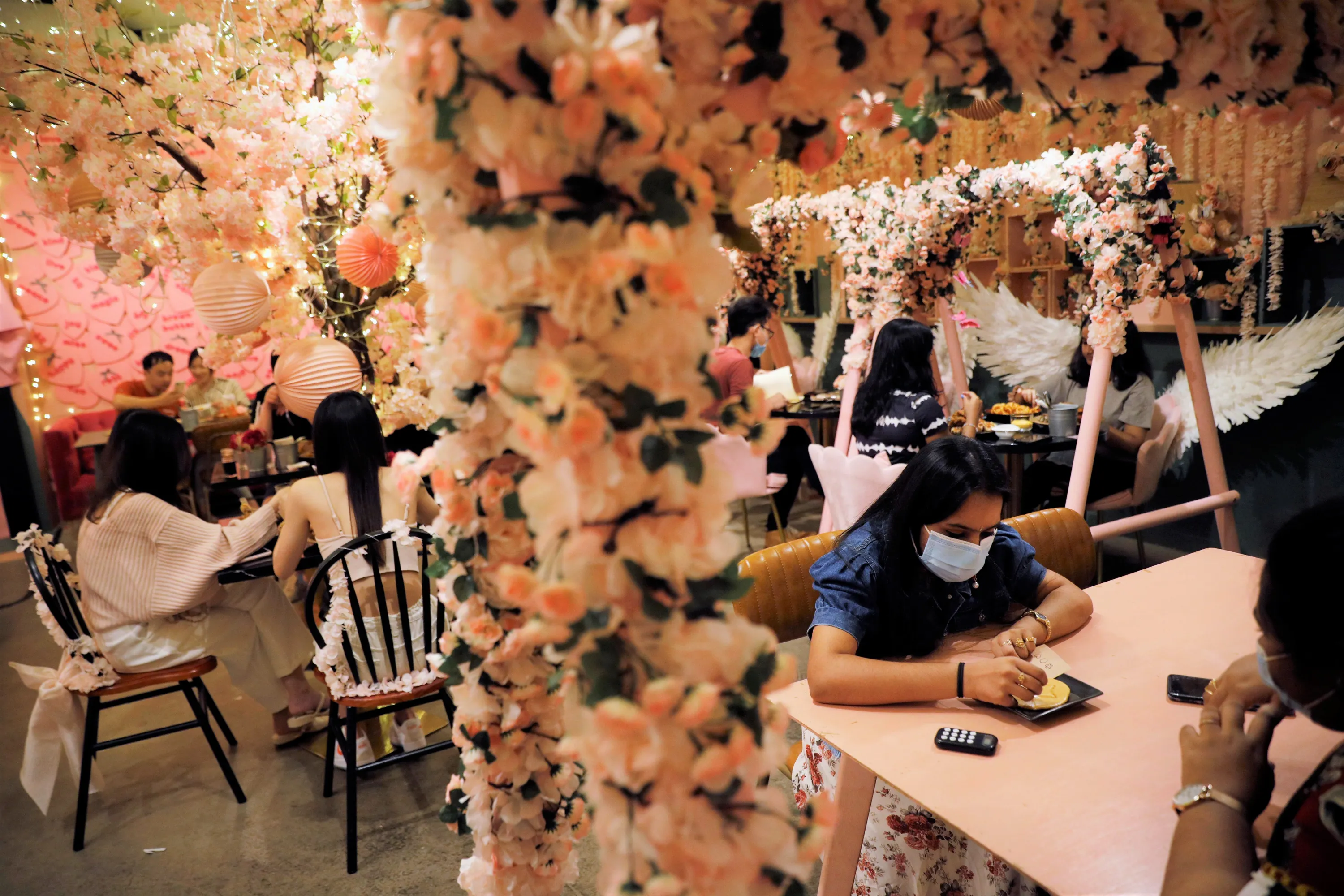 Dhiyanashree, 21, tries her hand at the “honeycomb challenge“ featured in Netflix's new hit series “Squid Game”, at Brown Butter Cafe in Singapore on October 1, 2021. (Photo by Edgar Su/Reuters)