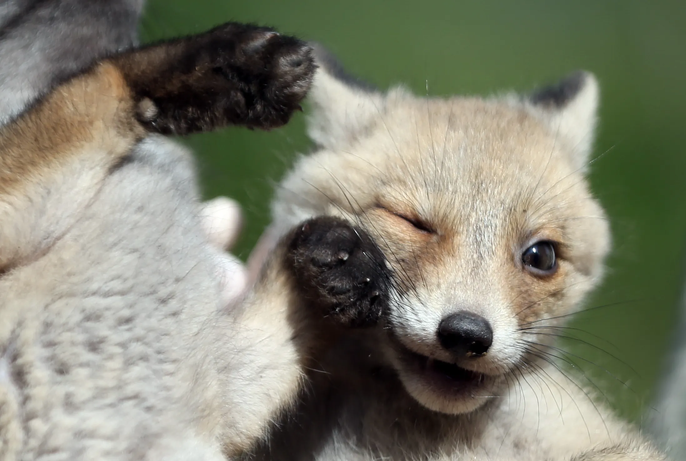 One of the two foxes, who lost their mother in a traffic accident, is seen at the Efteni Lake Wildlife Development Course in Duzce, Turkiye on June 01, 2022. (Photo by Omer Urer/Anadolu Agency via Getty Images)