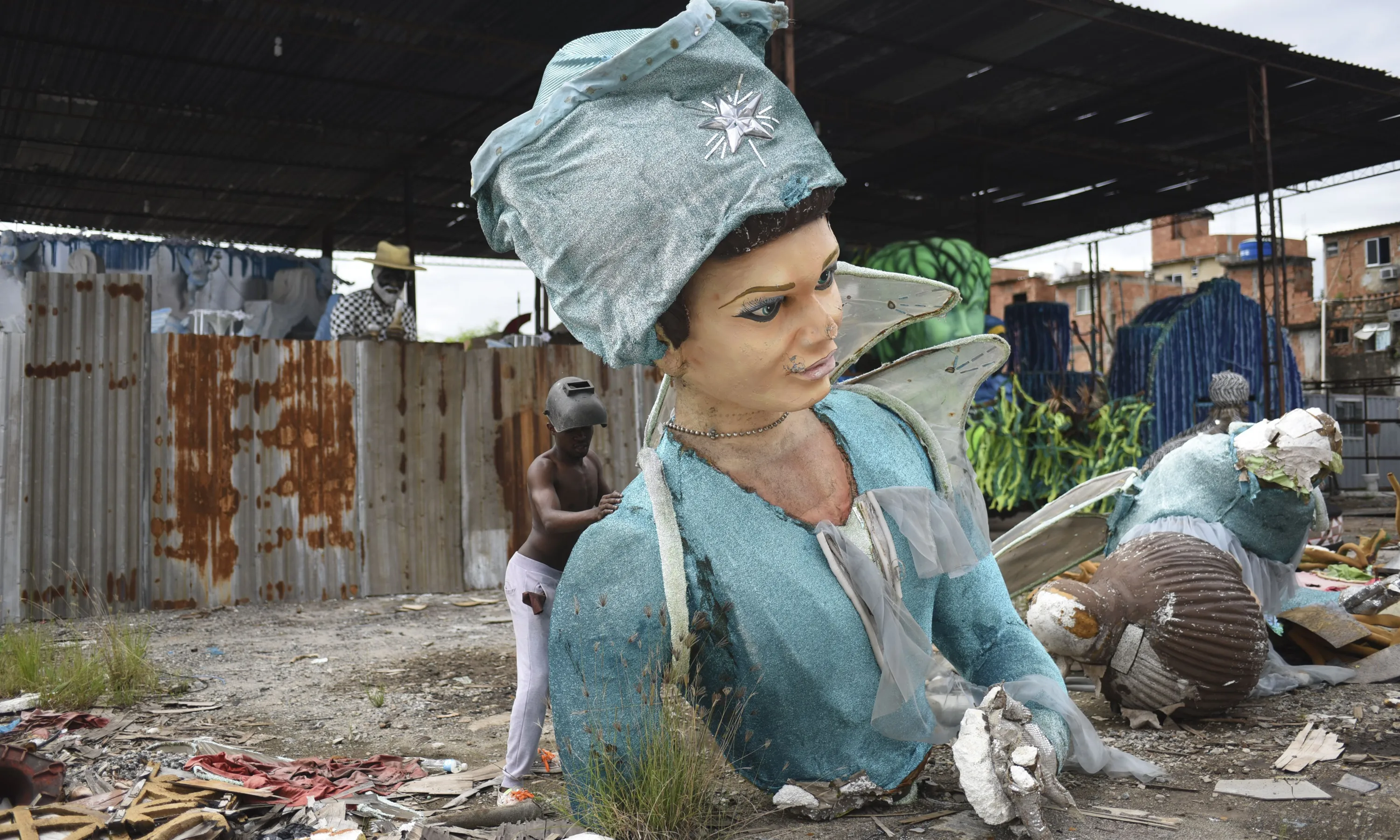 People collect dismantled and damaged objects to recycle them at a samba schools' garbage as the samba school parades were canceled due to the coronavirus (Covid-19) pandemic which killed total of 605.804 people in the country, on October 25, 2021 in Rio De Janerio, Brazil. (Photo by Fabio Teixeira/Anadolu Agency via Getty Images)