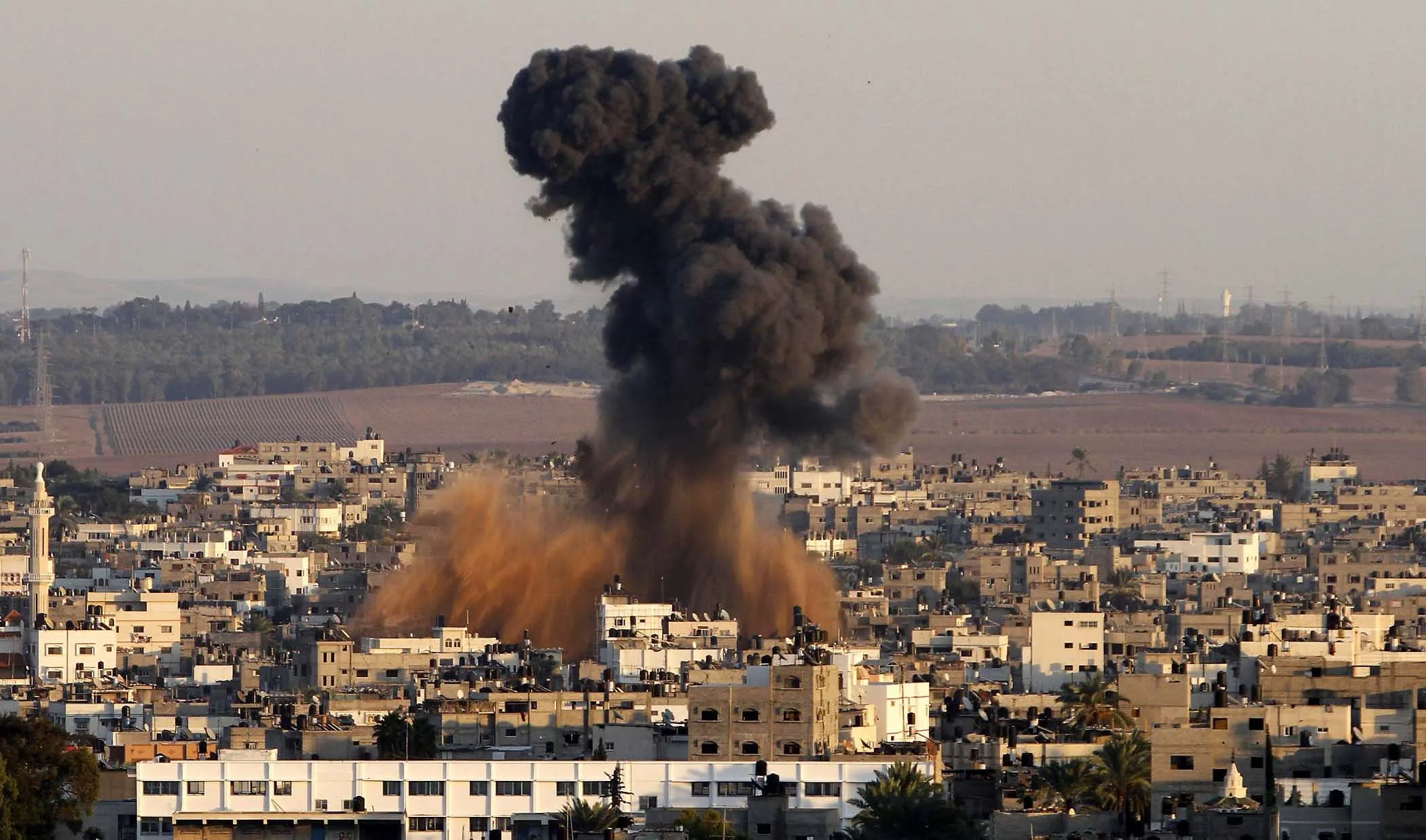 Smoke rises following an Israeli attack on Gaza City on Thursday. Israel barraged the Gaza Strip with airstrikes and shelling Wednesday and killed the Hamas military chief in a targeted strike, launching a campaign aimed at stopping rocket attacks from Islamic militants. The assault killed 10 other Palestinians, including two children and seven militants. On Thursday, militant rockets fired into Israel killed three Israelis, raising the likelihood of a further escalation. (Photo by Hatem Moussa/Associated Press)