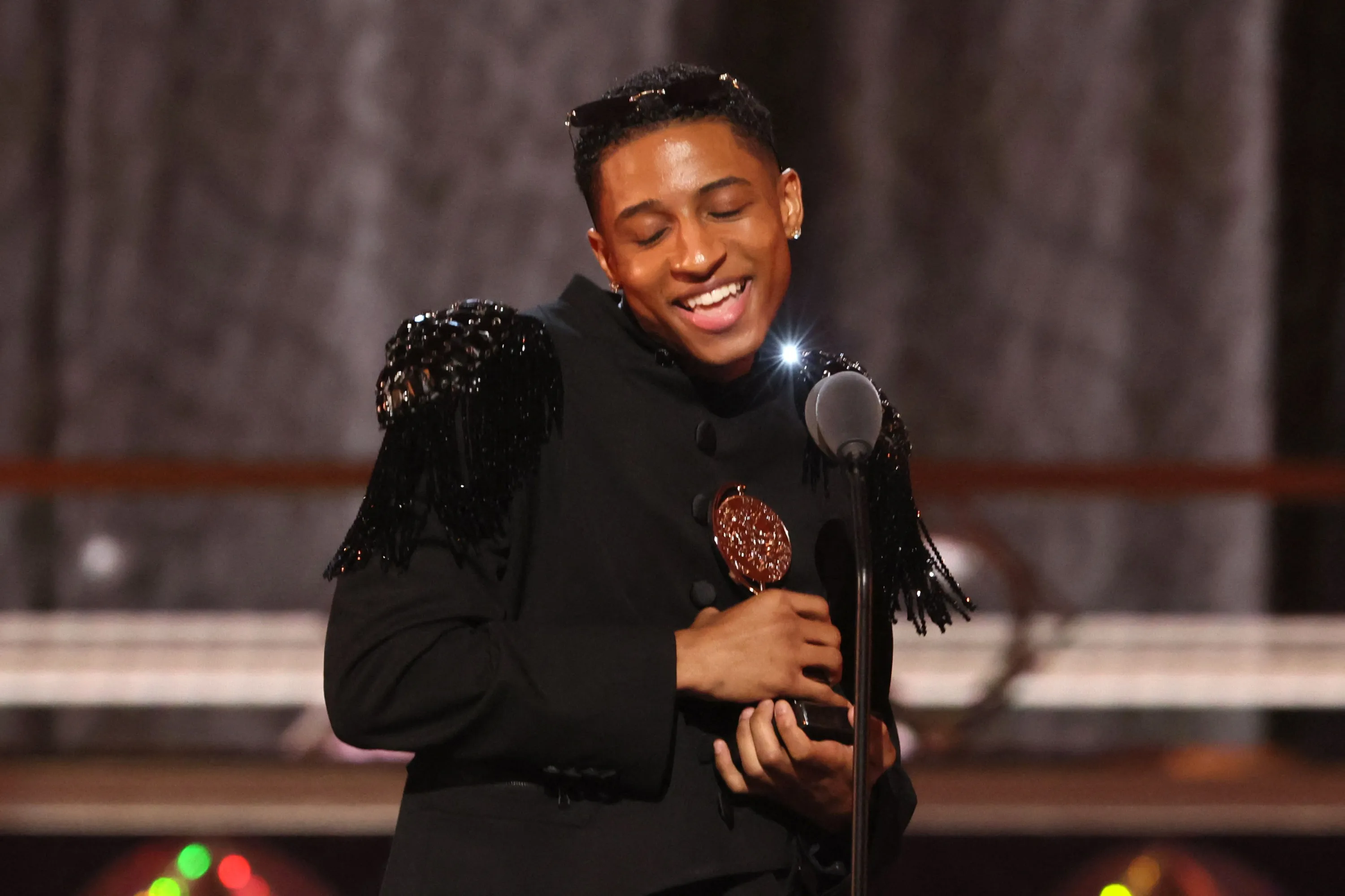 Myles Frost accepts the award for Best Performance by an Actor in a Leading Role in a Musical for MJ at the 75th Annual Tony Awards in New York City, U.S., June 12, 2022. (Photo by Brendan McDermid/Reuters)