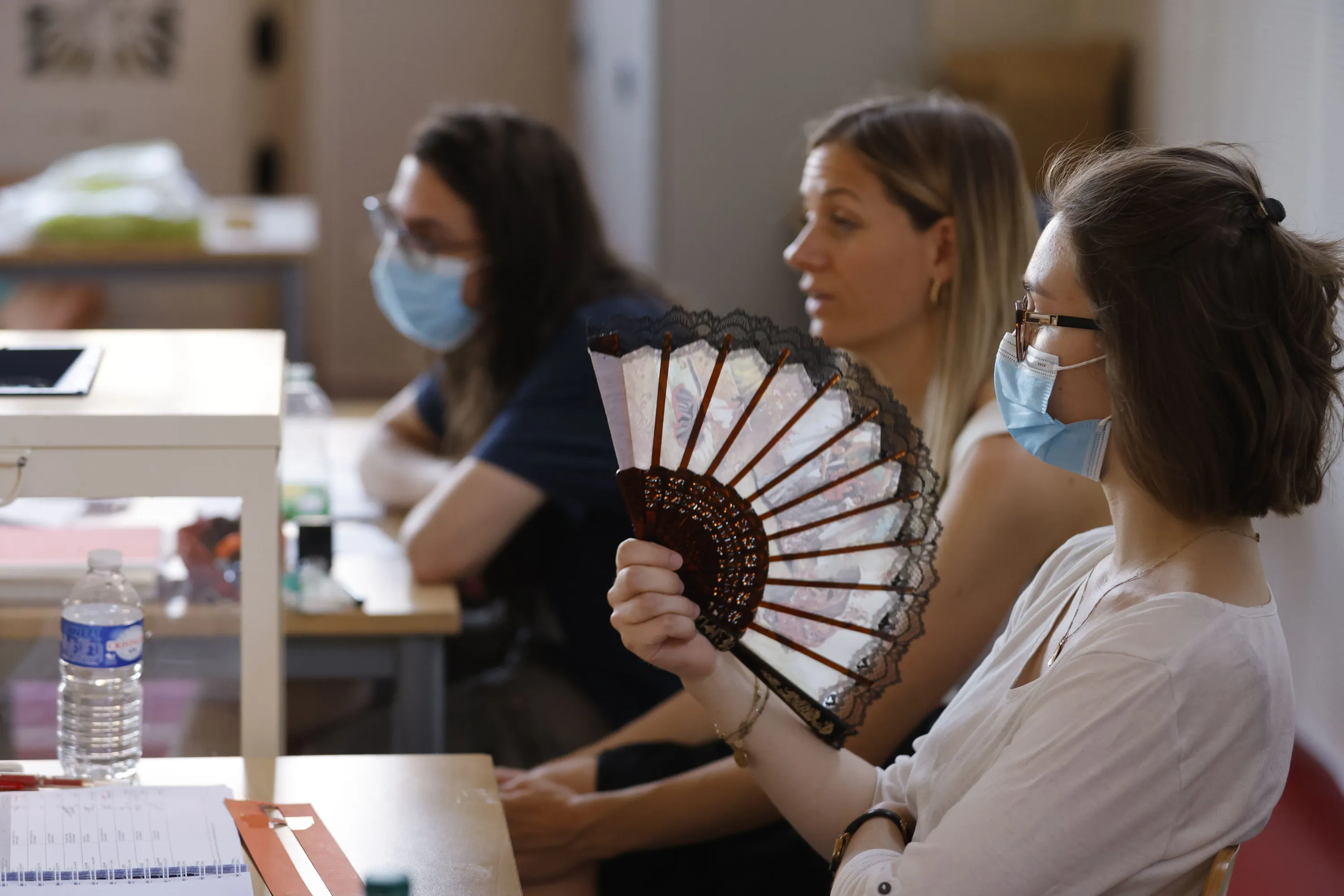 A voting assistant uses a fan at a polling station Sunday, June 19, 2022 in Strasbourg, eastern France. French voters are going to the polls in the final round of key parliamentary elections that will demonstrate how much legroom President Emmanuel Macron's party will be given to implement his ambitious domestic agenda. (Photo by Jean-Francois Badias/AP Photo)