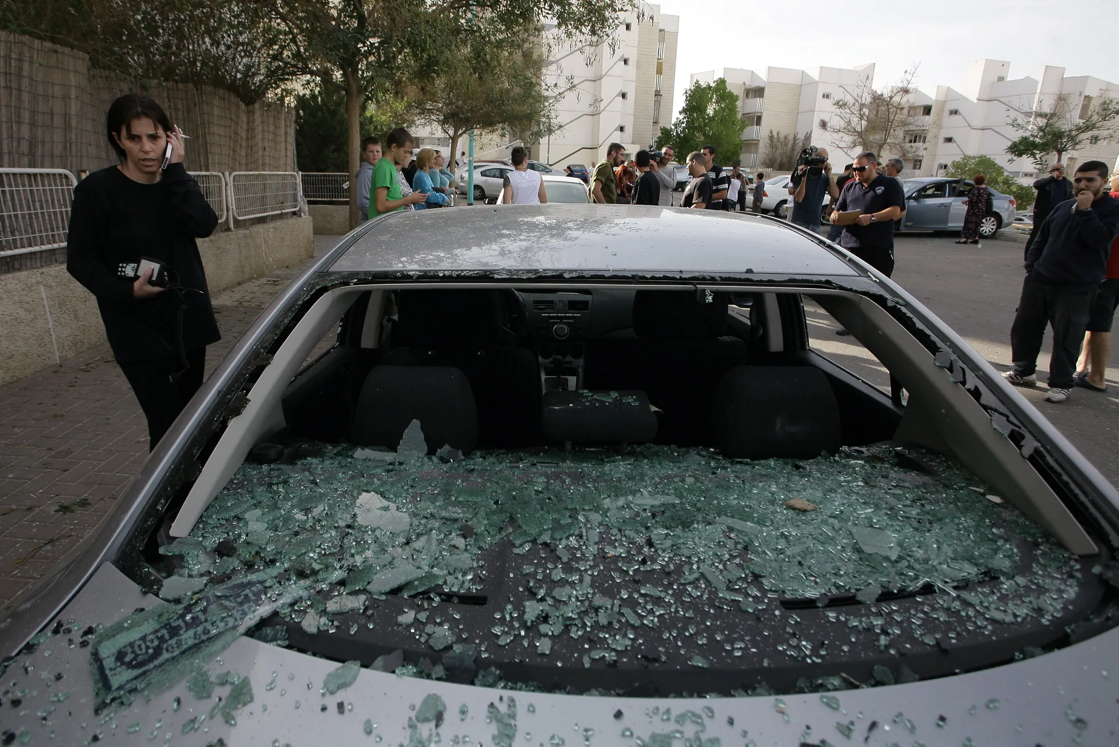 Missile hit the car in Beersheba. (Photo by Ilan Assayag)