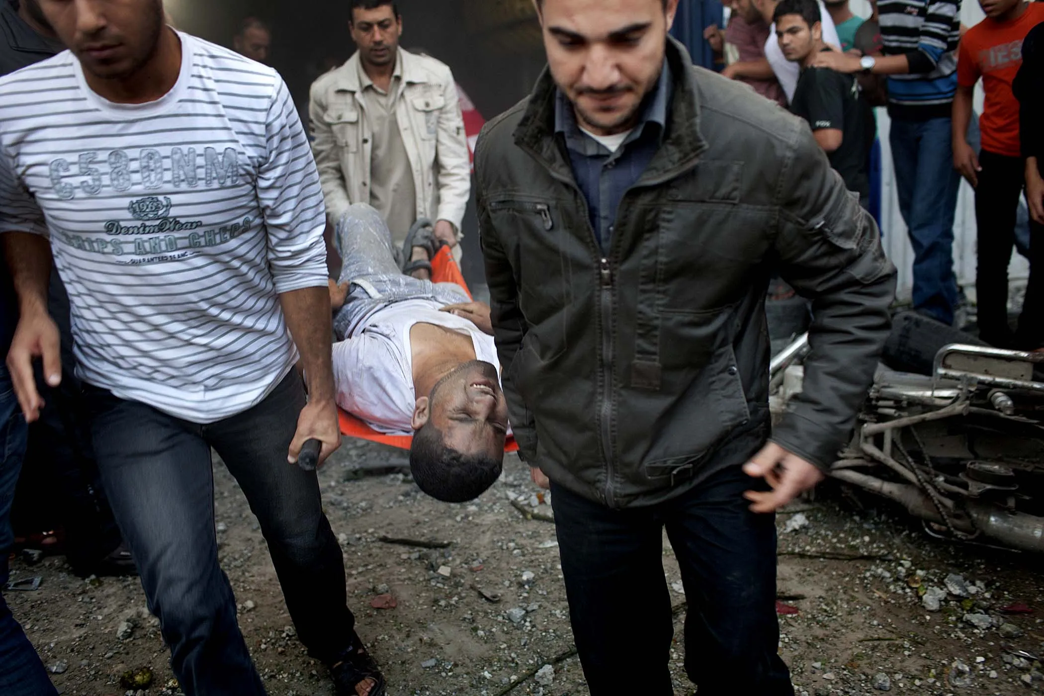 A man is helped after he was injured by a bomb that exploded in Gaza City on Saturday. (Photo by Tyler Hicks/The New York Times)