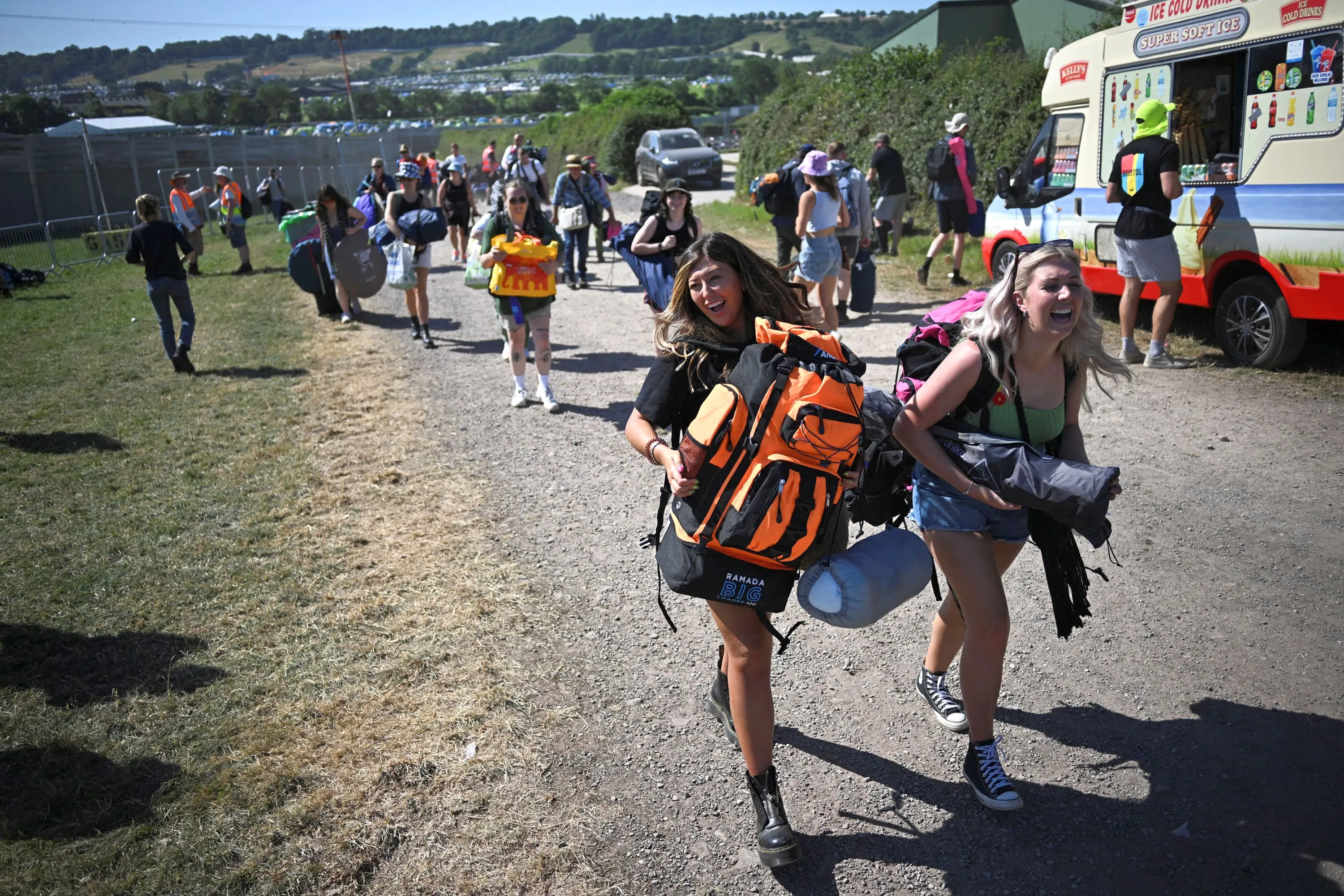 Revellers arrive for the Glastonbury Festival at Worthy Farm in Somerset, Britain on June 22, 2022. (Photo by Dylan Martinez/Reuters)