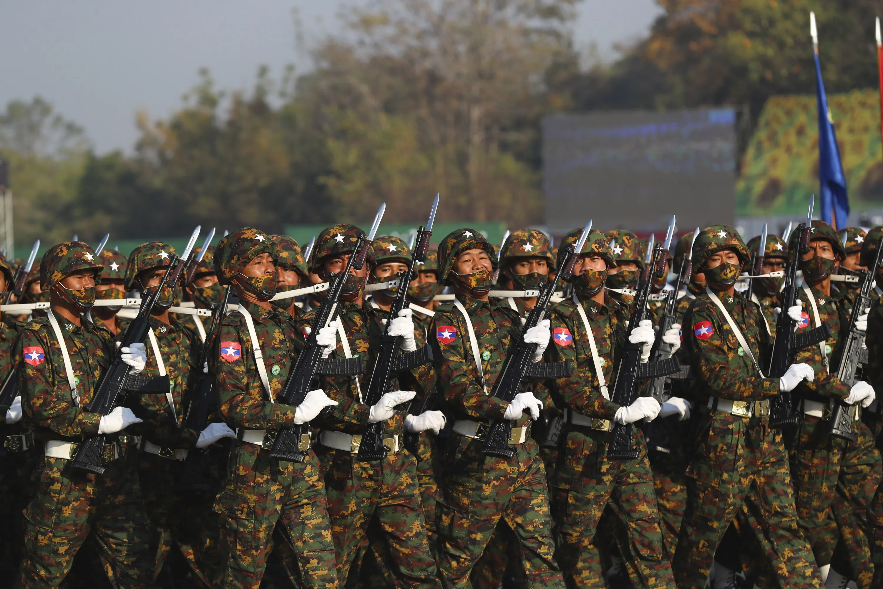 Soldiers march during a ceremony to mark Myanmar's 75th anniversary Union Day in Naypyitaw, Myanmar, Saturday, February 12, 2022. The occasion is celebrated for the date in 1947 when many of the country's ethnic groups signed an agreement to unify following decades of British colonial rule, but it was ineffective, and efforts at unity remain failed. (Photo by AP Photo/Stringer)