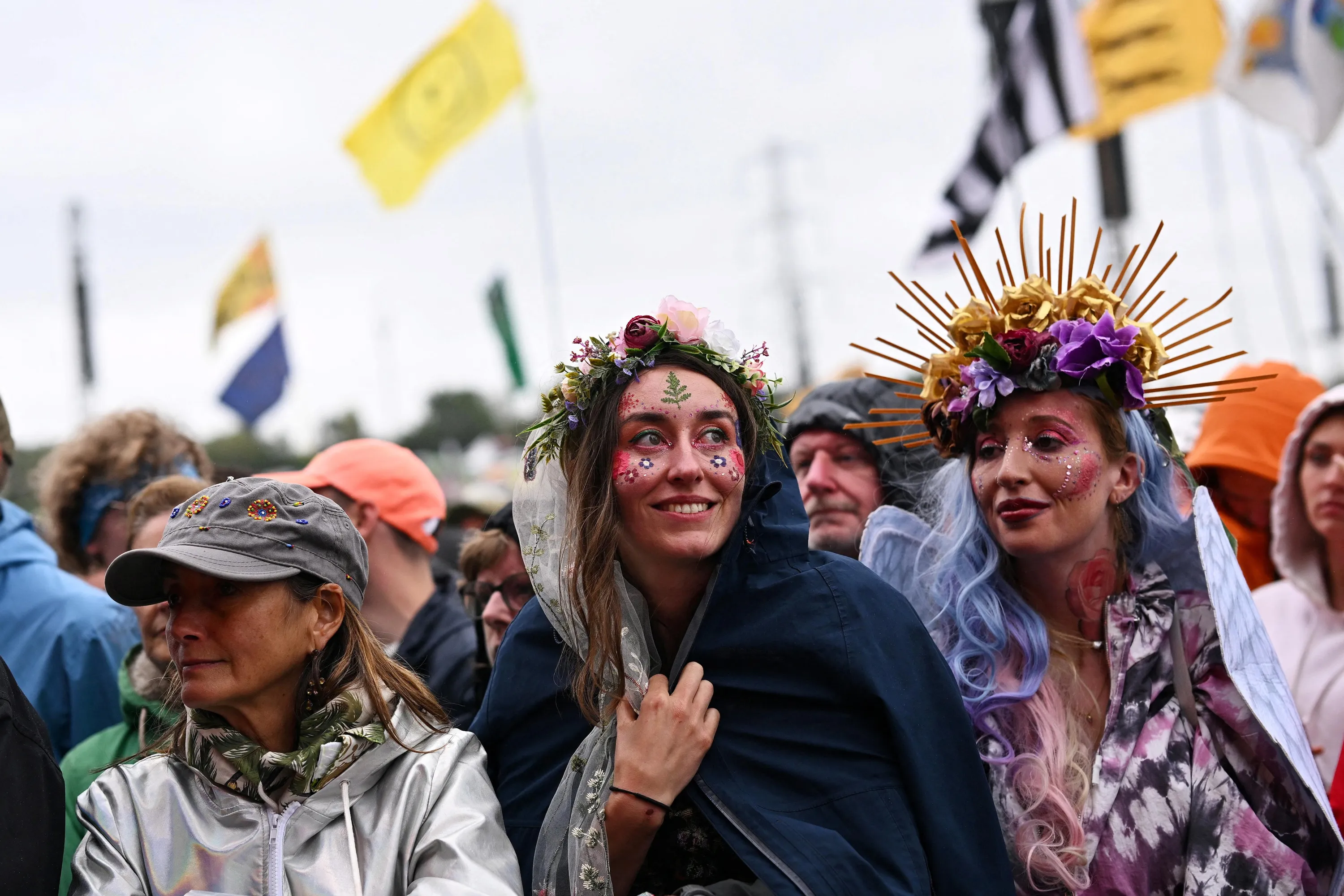 Revellers wait for Robert Plant to perform on the Pyramid Stage at Worthy Farm in Somerset during the Glastonbury Festival in Britain on June 24, 2022. (Photo by Dylan Martinez/Reuters)