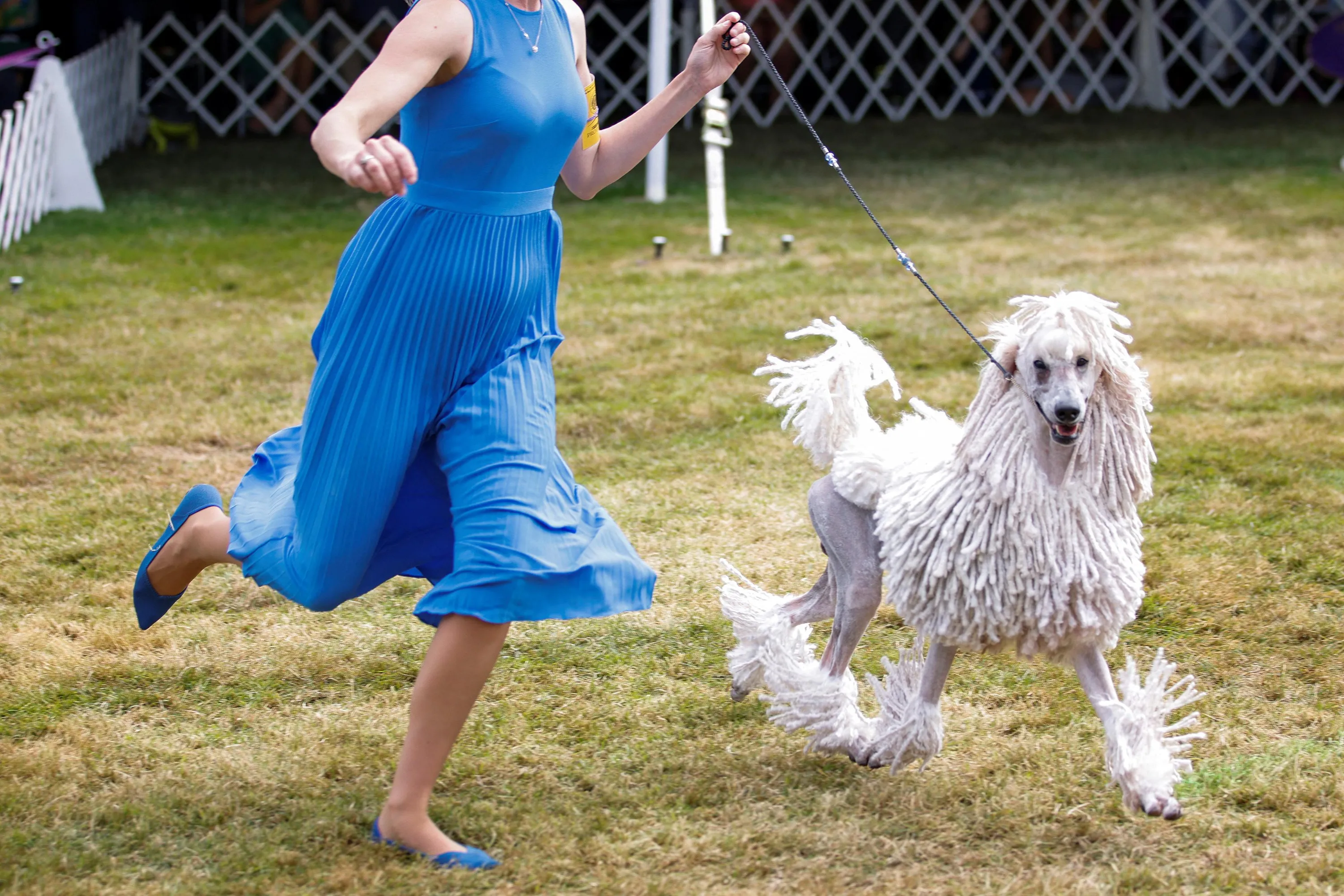 A Standard Poodle dog competes during the 146th Westminster Kennel Club Dog Show at the Lyndhurst Estate in Tarrytown, New York, U.S., June 21, 2022. (Photo by Eduardo Munoz/Reuters)