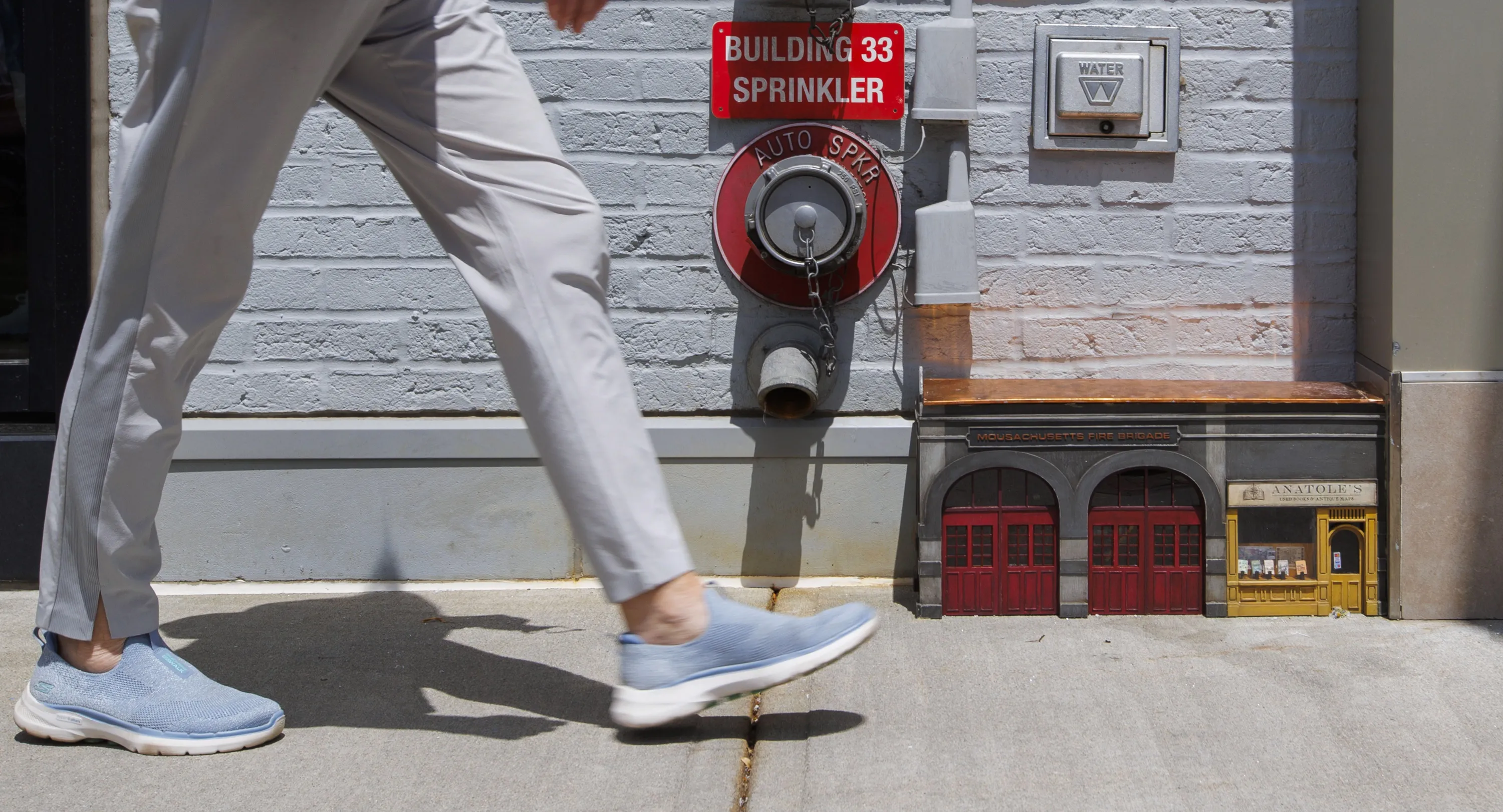 A “mouse house” fire station and book store, designed by an anonymous group of Swedish artists known as ”AnonyMouse”, is installed next to a retail store in Newton, Massachusetts, USA, 23 June 2022. Known for mouse-themed miniatures in Sweden, France and the Isle of Man, the collective has started installing several of the miniatures in Boston and the surrounding areas. (Photo by C.J. Gunther/EPA/EFE)