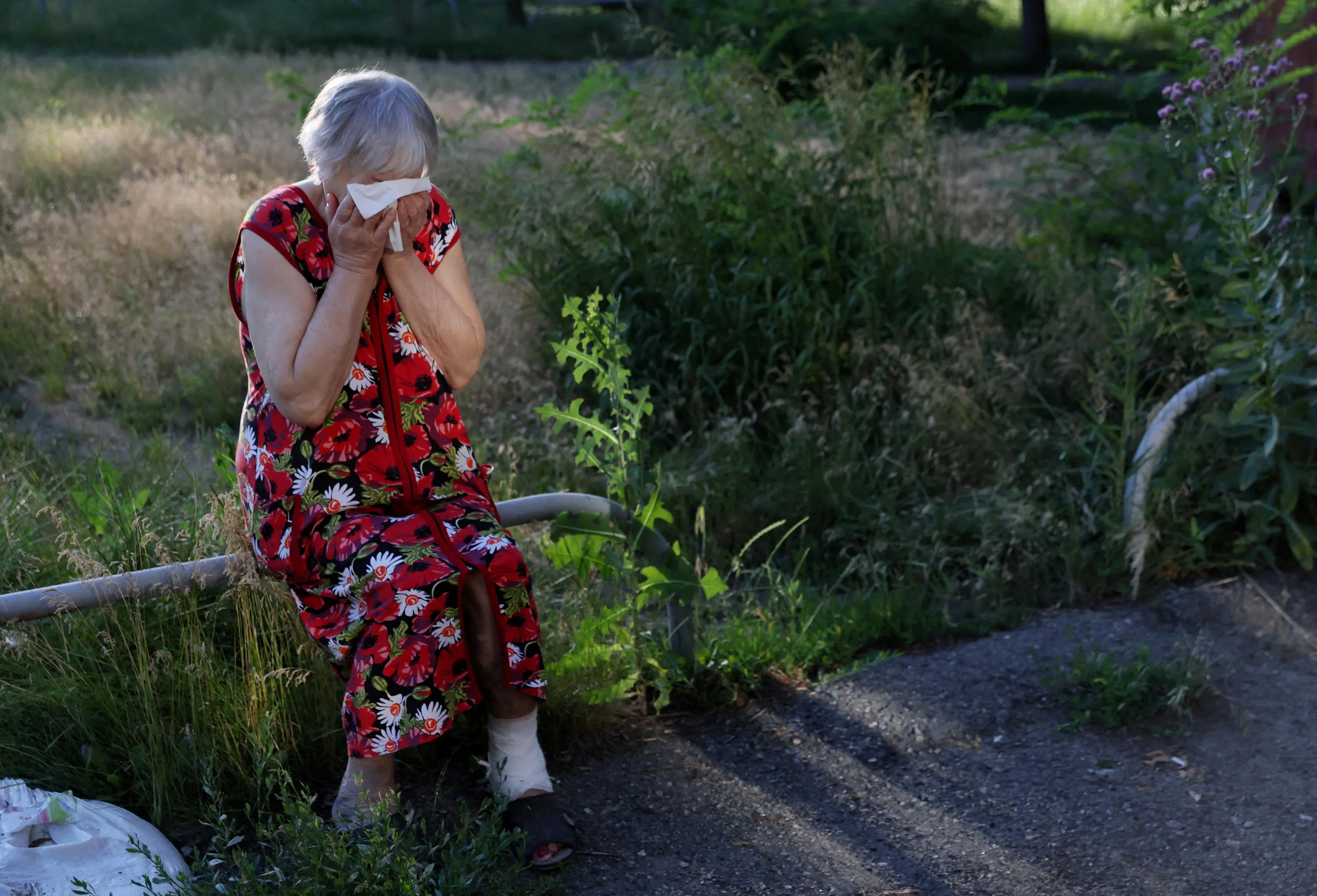 Anna Satanovskaya, 84, takes in the sudden loss of her husband, who was killed moments before, after a neighbourhood of apartment complexes was hit multiple times by shelling as Russia's attack on Ukraine continues in Kharkiv, Ukraine, June 27, 2022. (Photo by Leah Millis/Reuters)