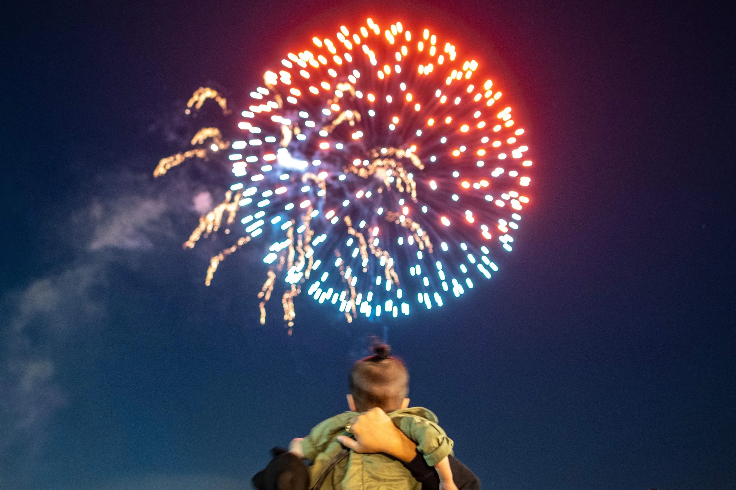 A kid watches fireworks during the Yokohama port festival, which is held completely in the field for the first time in 3 years with no restriction on number of attendees and less strict COVID-19 pandemic restrictions, to mark the 163rd anniversary for the opening of the Port of the city, at at Rinko Park in Yokohama on June 2, 2022. (Photo by Philip Fong/AFP Photo)