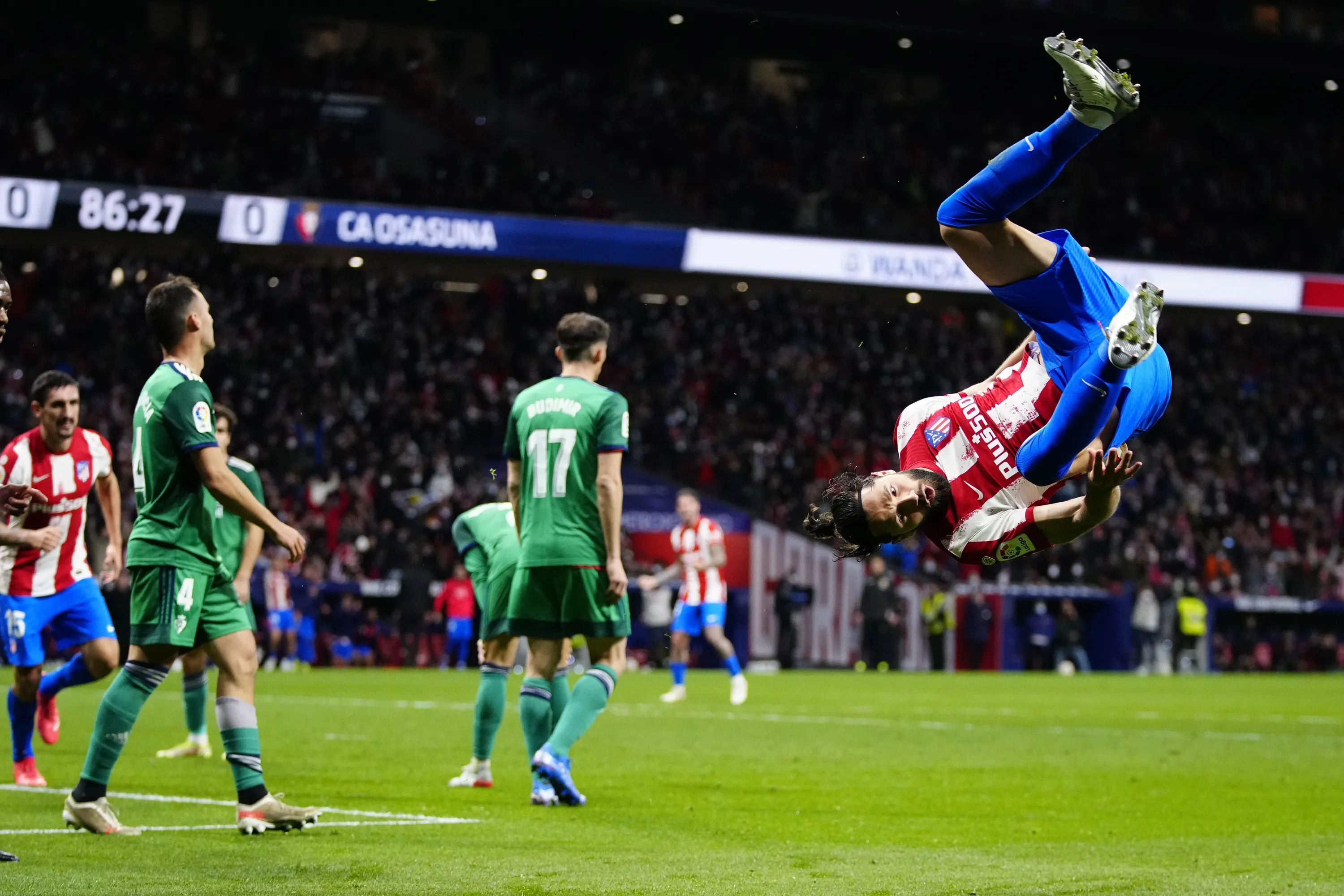 Atletico Madrid's Felipe celebrates his goal against Osasuna during a Spanish La Liga soccer match between Atletico Madrid and Osasuna at Wanda Metropolitano stadium in Madrid, Spain, Saturday, November 20, 2021. (Photo by Manu Fernandez/AP Photo)
