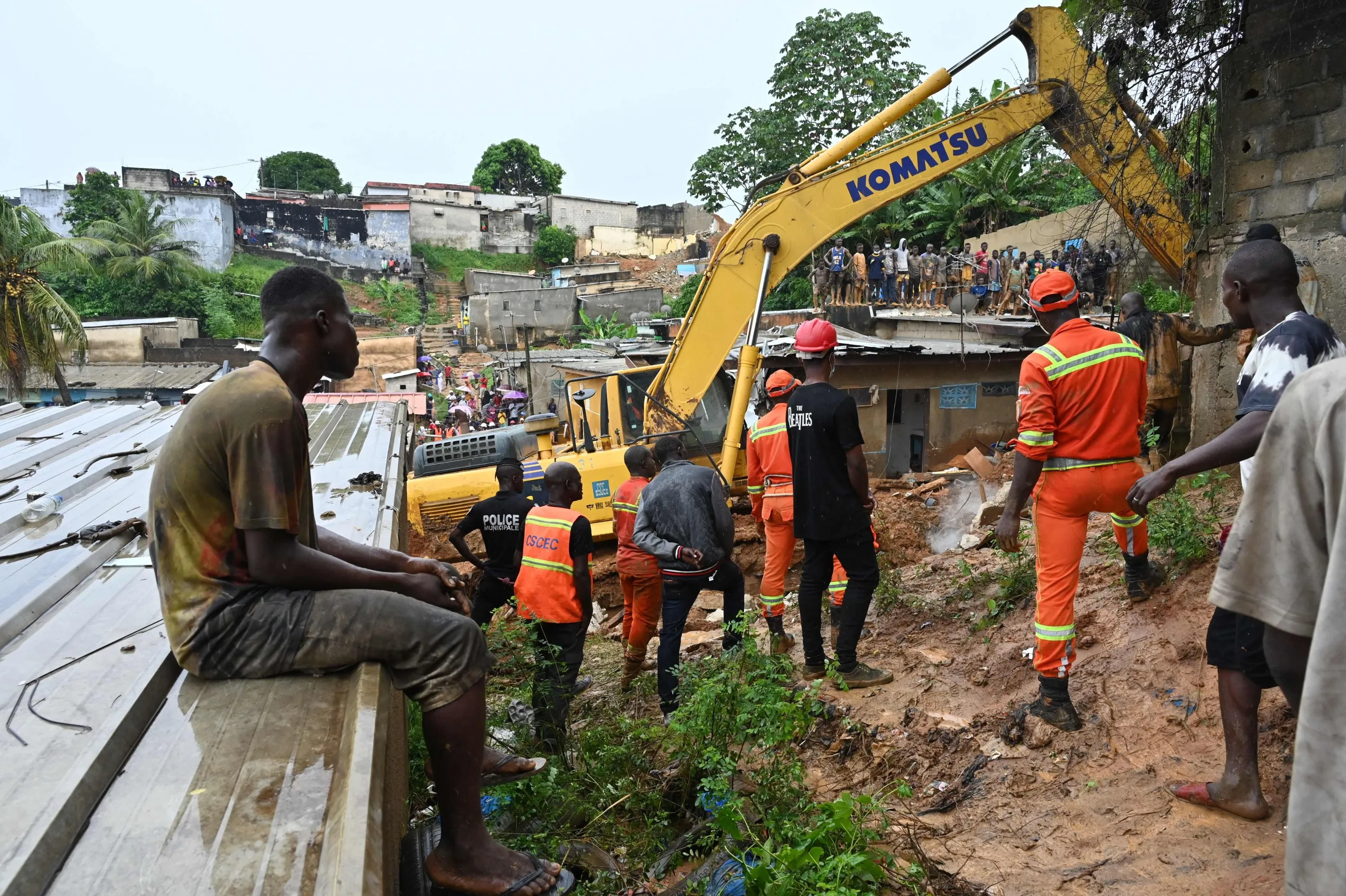 Rescuers use heavy machinery as they search for survivors after houses collapsed on June 16, 2022 in distrit of Attecoube following heavy rains in Abidjan. (Photo by Issouf Sanogo/AFP Photo)