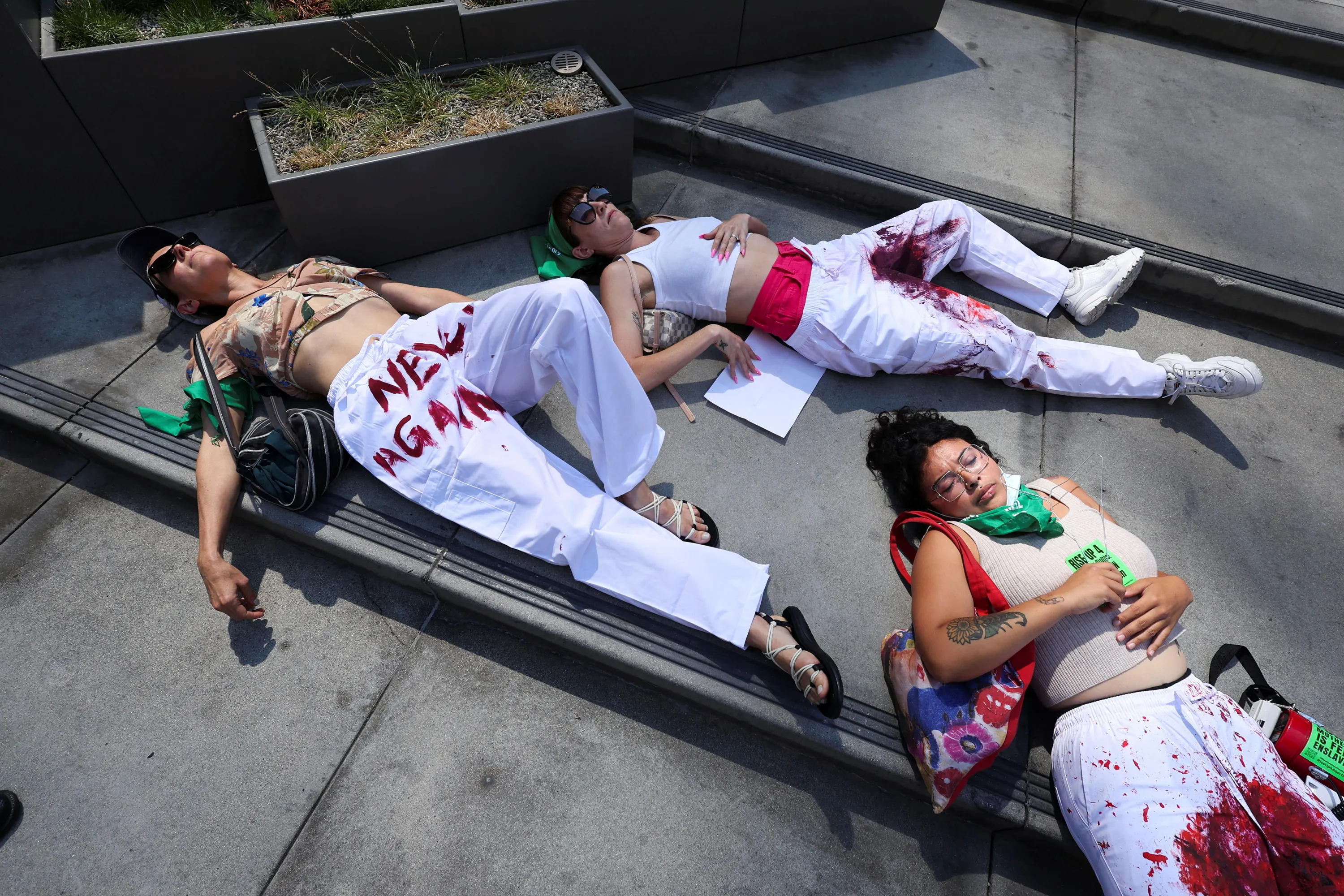 Abortion rights protesters demonstrate after the U.S. Supreme Court ruled in the Dobbs v Women's Health Organization abortion case, overturning the landmark Roe v Wade abortion decision in Los Angeles, California, U.S., June 29, 2022. (Photo by Lucy Nicholson/Reuters)