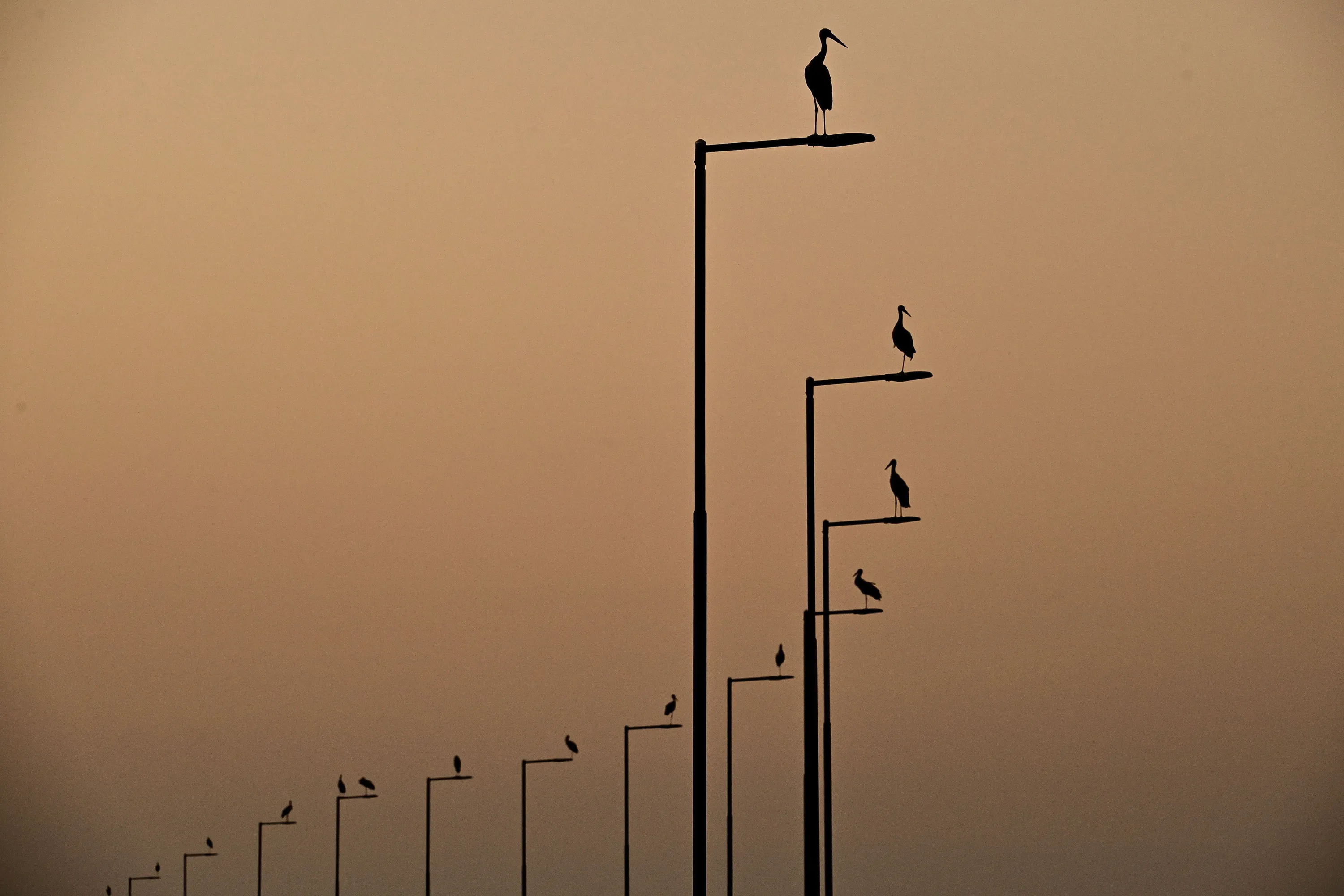 Storks rest on electric poles during sunset, near Debrecen, Hungary, Tuesday, May 31, 2022. (Photo by Zsolt Czegledi/MTI via AP Photo)