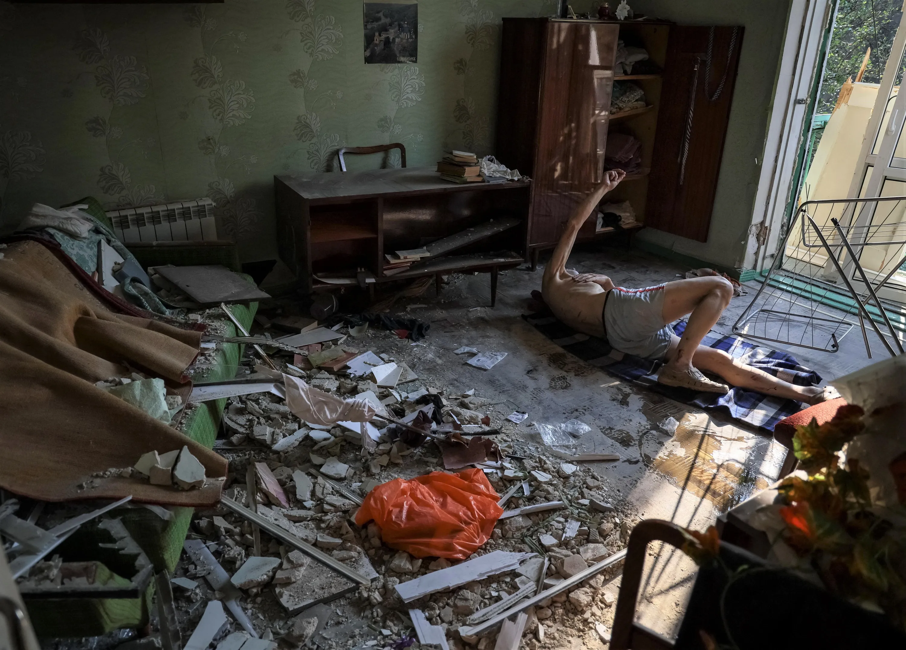 Wounded local resident Volodymir, 66, lies inside a flat, at an apartment building destroyed in a military strike, in Kramatorsk,amid Russia's invasion of Ukraine on July 7, 2022. (Photo by Gleb Garanich/Reuters)