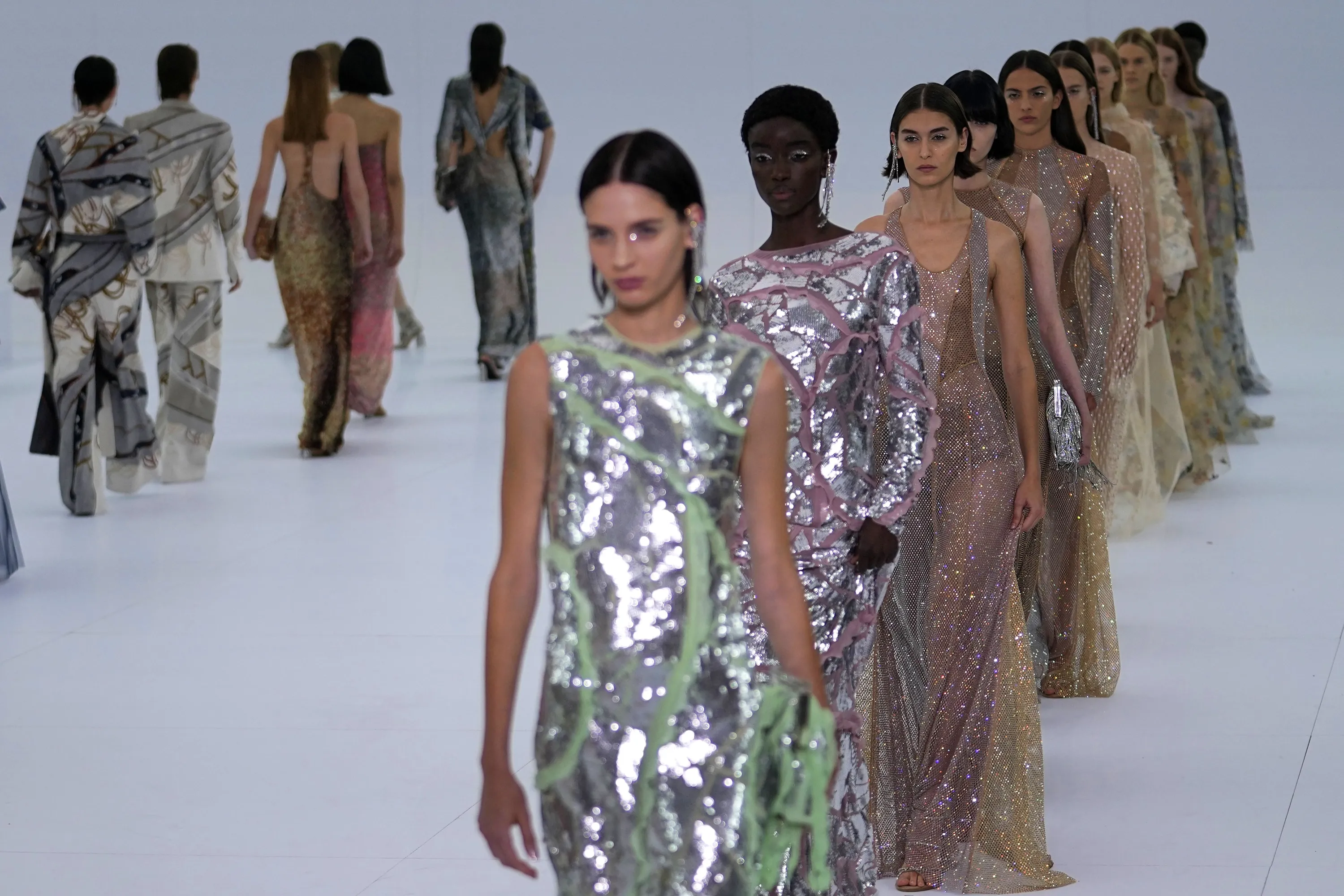 Models wear creations as part of Fendi Couture's Haute Couture Fall/Winter 2022-2023 fashion collection presented Thursday, July 7, 2022 in Paris. (Photo by Michel Euler/AP Photo)