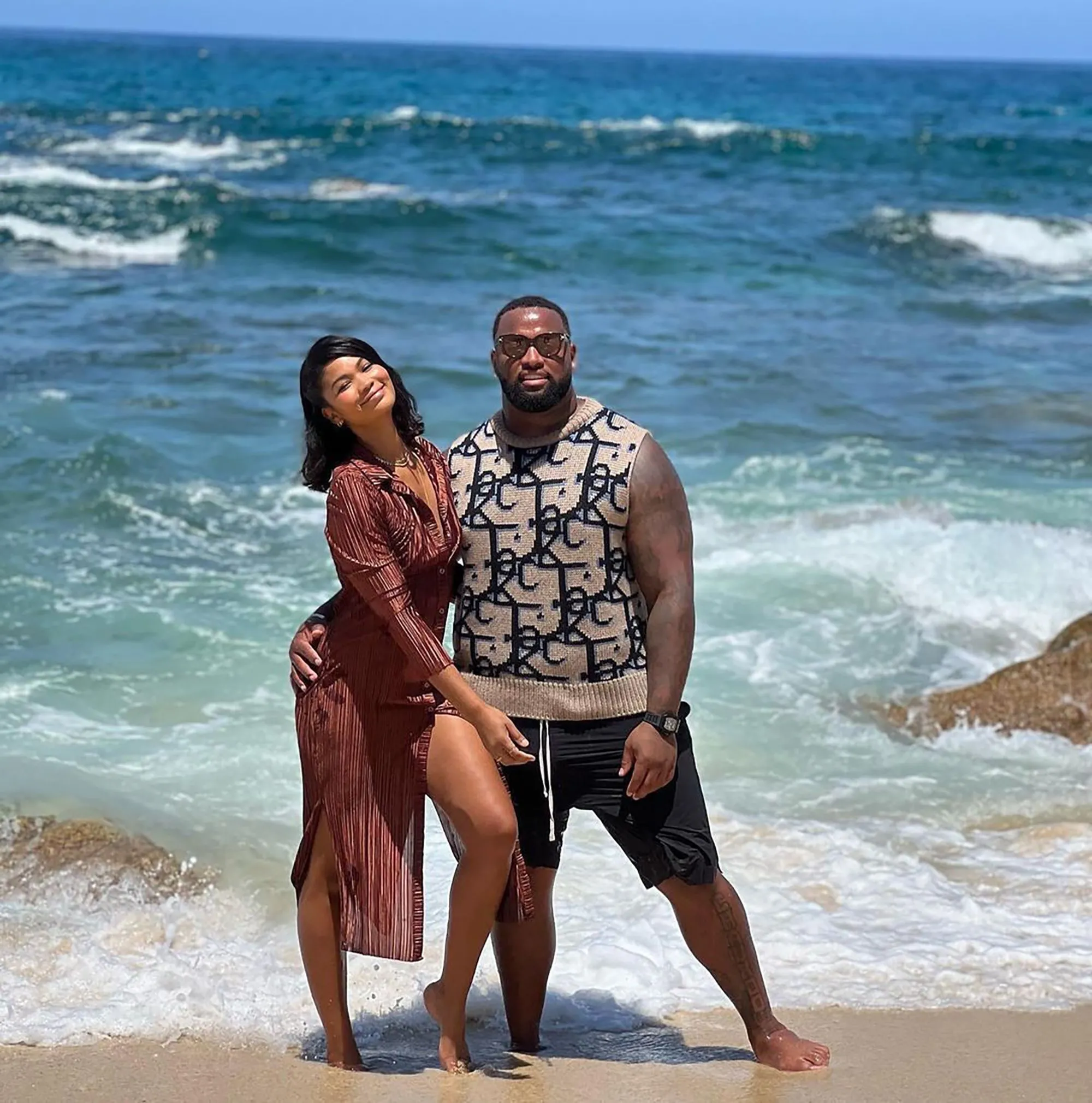 American model best known for her work as a Victoria's Secret Angel Chanel Iman poses with her boyfriend, American football defensive tackle Davon Godchaux, during a “baecation” in the first decade of July 2022. (Photo by chaneliman/Instagram)