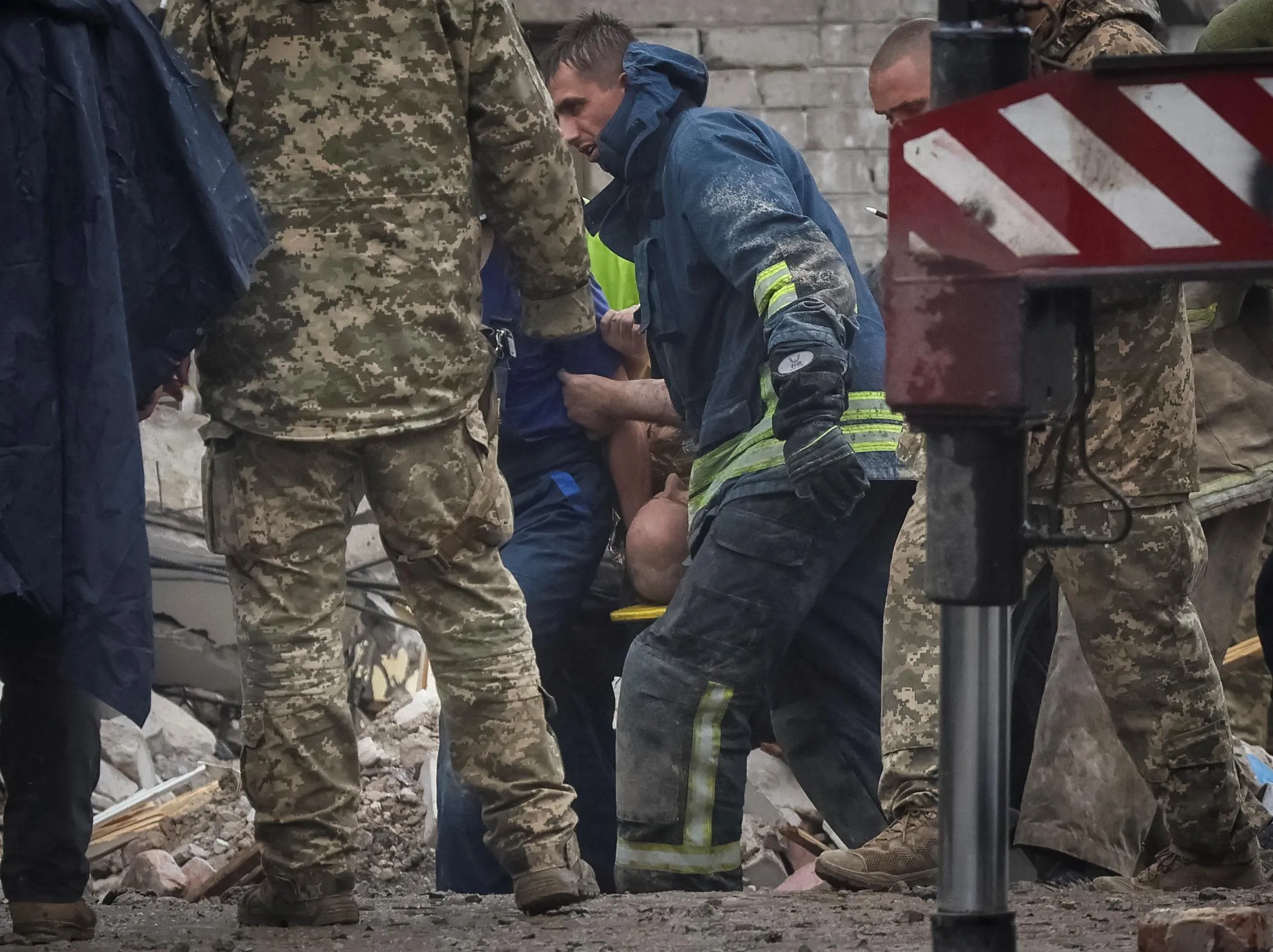 Rescuers extract a survivor from a residential building damaged by a Russian military strike in the town of Chasiv Yar, in Donetsk region, Ukraine, July 11, 2022. (Photo by Gleb Garanich/Reuters)
