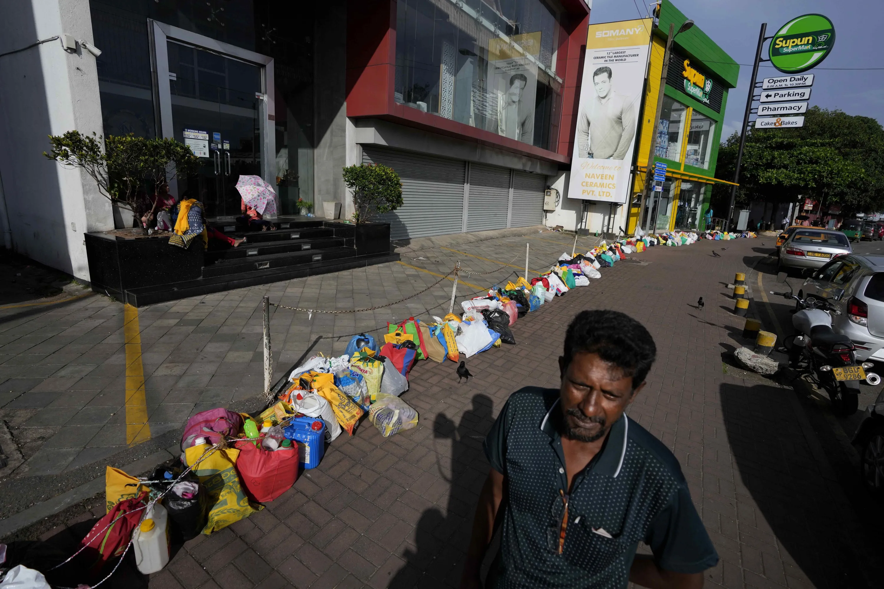 A man waits to buy kerosene oil standing by a line of empty canisters placed outside a fuel station amid shortage of cooking gas in Colombo, Sri Lanka, Thursday, June 23, 2022. Sri Lankans have endured months of shortages of food, fuel and other necessities due to the country’s dwindling foreign exchange reserves and mounting debt, worsened by the pandemic and other longer term troubles. (Photo by Eranga Jayawardena/AP Photo)