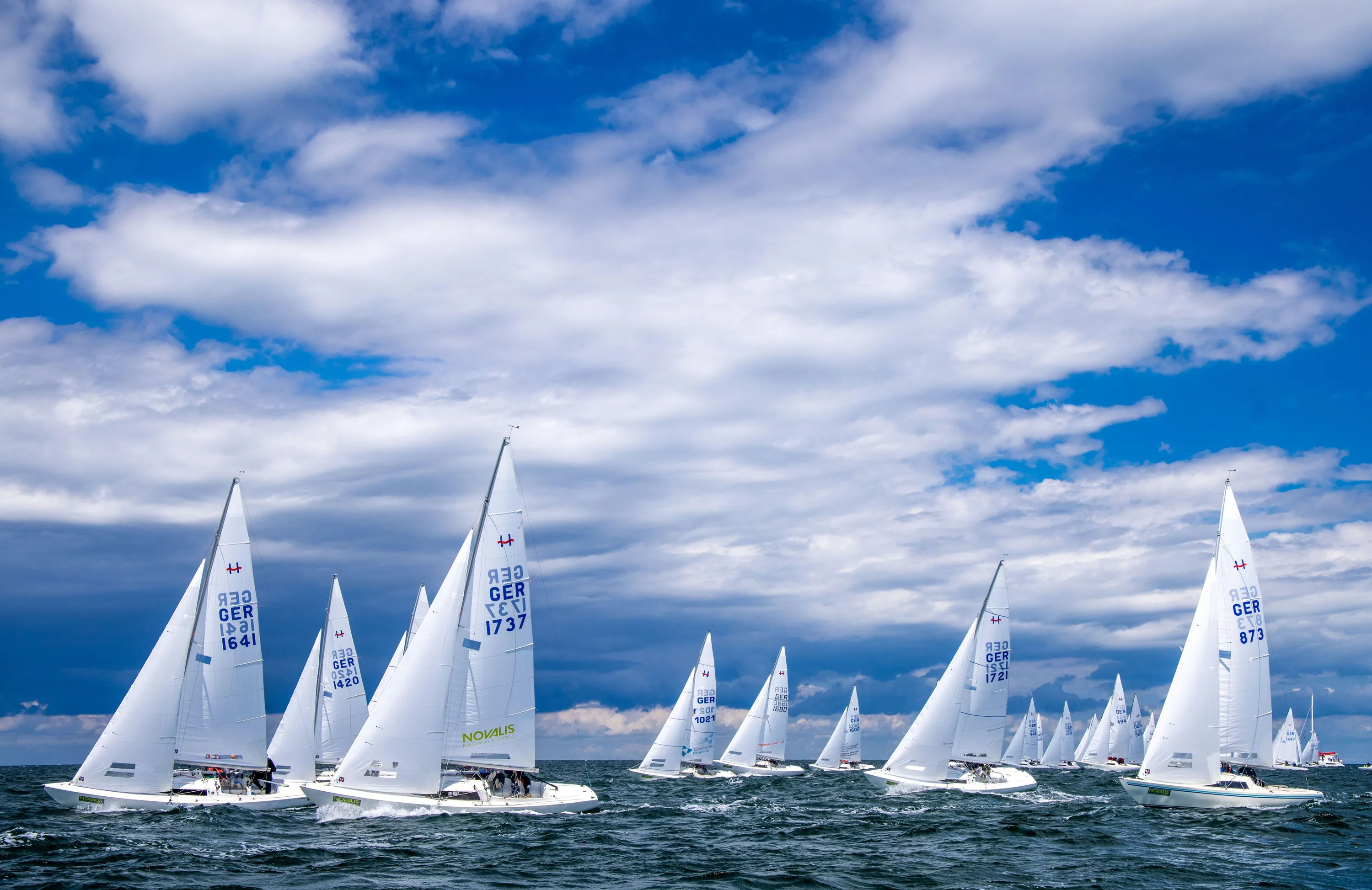 The teams start to the first classification race of the H-Boat World Championship during the Warnemunder Woche on the Baltic Sea on July 5, 2022. After two difficult Corona years, the sailors have started the 84th Warnemunder Woche on 02.07.2022 in the best weather. The organizers expect about 450 boats from 20 countries at the sailing competition. (Photo by Jens Buttner/dpa/Alamy Live News)