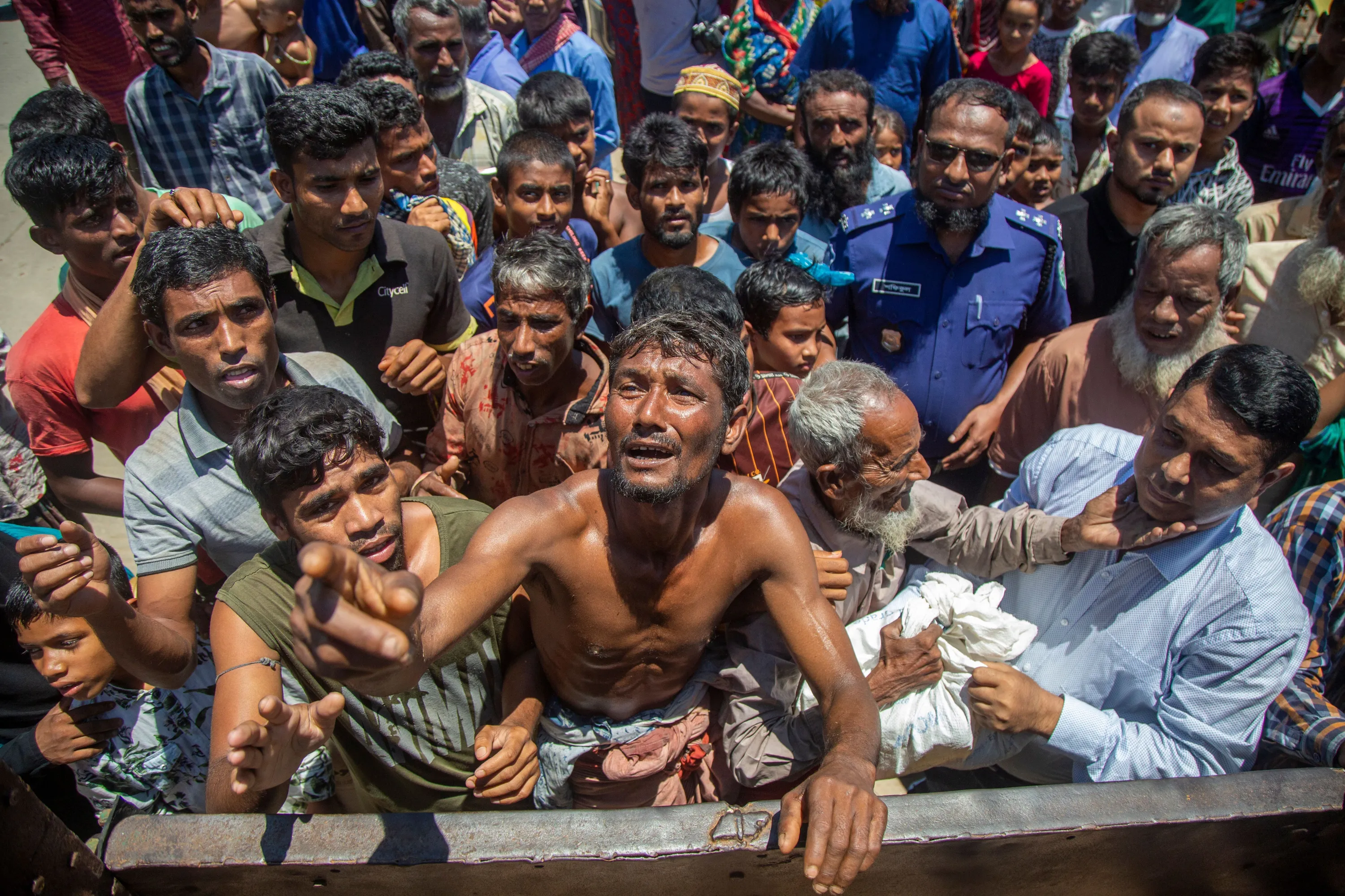 People wait to receive relief material distributed by private organization after a flood in Companyganj Upazila, Sylhet district, in Bangladesh, 24 June 2022. According to Bangladeshi authorities, 33 upazilas of four districts have been affected by flood, where over 4.5 million people remain marooned. Floodwaters have affected parts of Bangladesh and northeast India after days of intense rain. Experts considered the flood worse than the ones they had experienced in 1998 and 2004. (Photo by Monirul Alam/EPA/EFE/Rex Features/Shutterstock)
