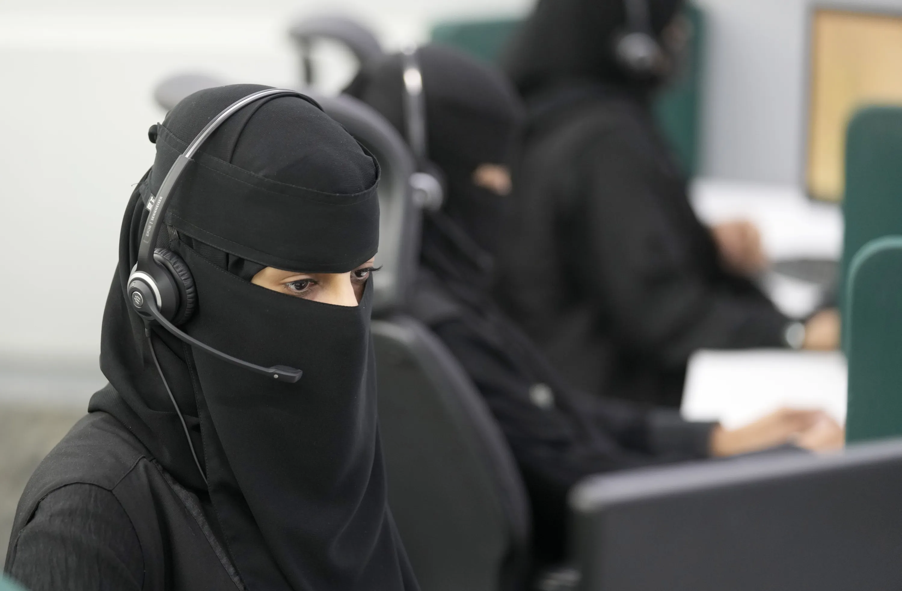 Saudi policewomen receive calls at the the Saudi National Center for Security Operations, 911, ahead of the Hajj pilgrimage in the Muslim holy city of Mecca, Saudi Arabia, Saudi Arabia, Monday, July 4, 2022. (Photo by Amr Nabil/AP Photo)