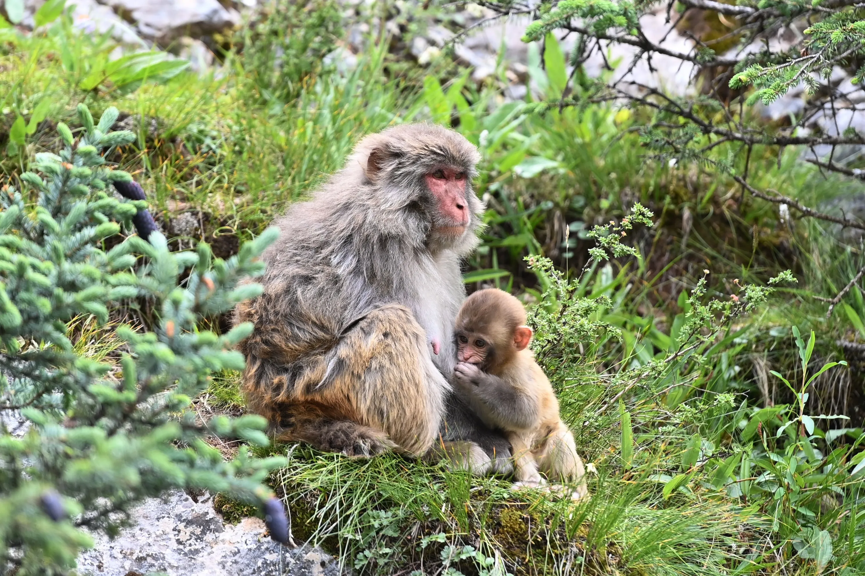 Photo taken on July 11, 2022 shows Tibetan macaques in a forest farm in Baizha Township of Nangqian County, Yushu Tibetan Autonomous Prefecture, northwest China's Qinghai Province. (Photo by Xinhua News Agency/Rex Features/Shutterstock)