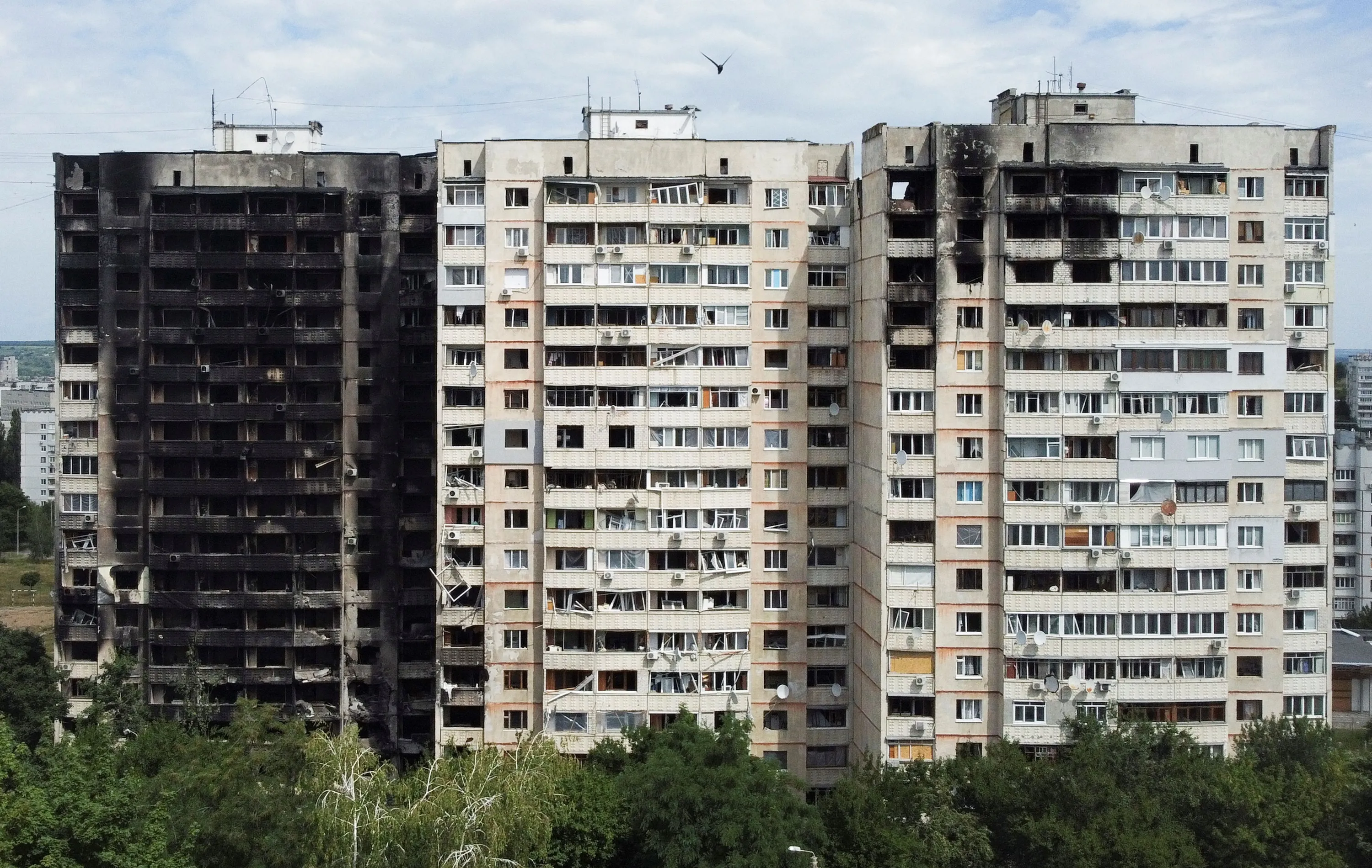 Buildings destroyed by military strikes are seen, as Russia's invasion of Ukraine continues, in northern Saltivka, one of the most damaged residential areas of Kharkiv, Ukraine July 17, 2022. (Photo by Nacho Doce/Reuters)