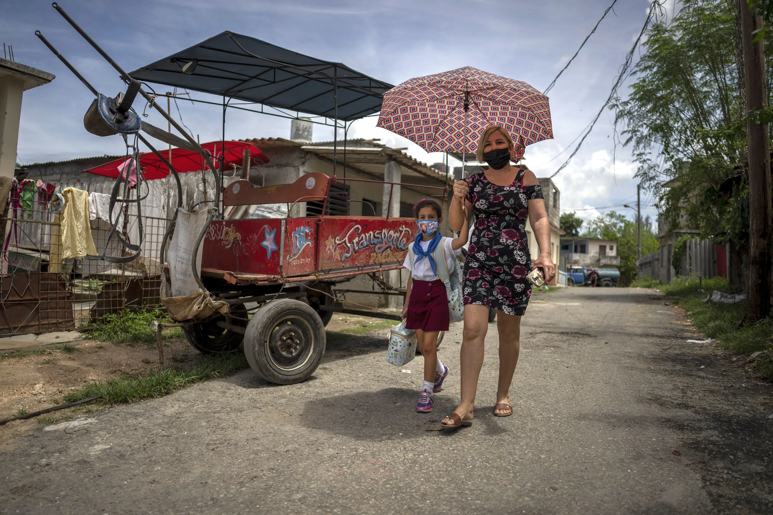 Danmara Triana walks home after picking up her daughter Alice from school in Cienfuegos, Cuba, Thursday, May 19, 2022. Triana's husband and son, who is Alice's father and brother, have lived in the U.S. since 2015, while she and their two daughters stayed behind. (Photo by Ramon Espinosa/AP Photo)