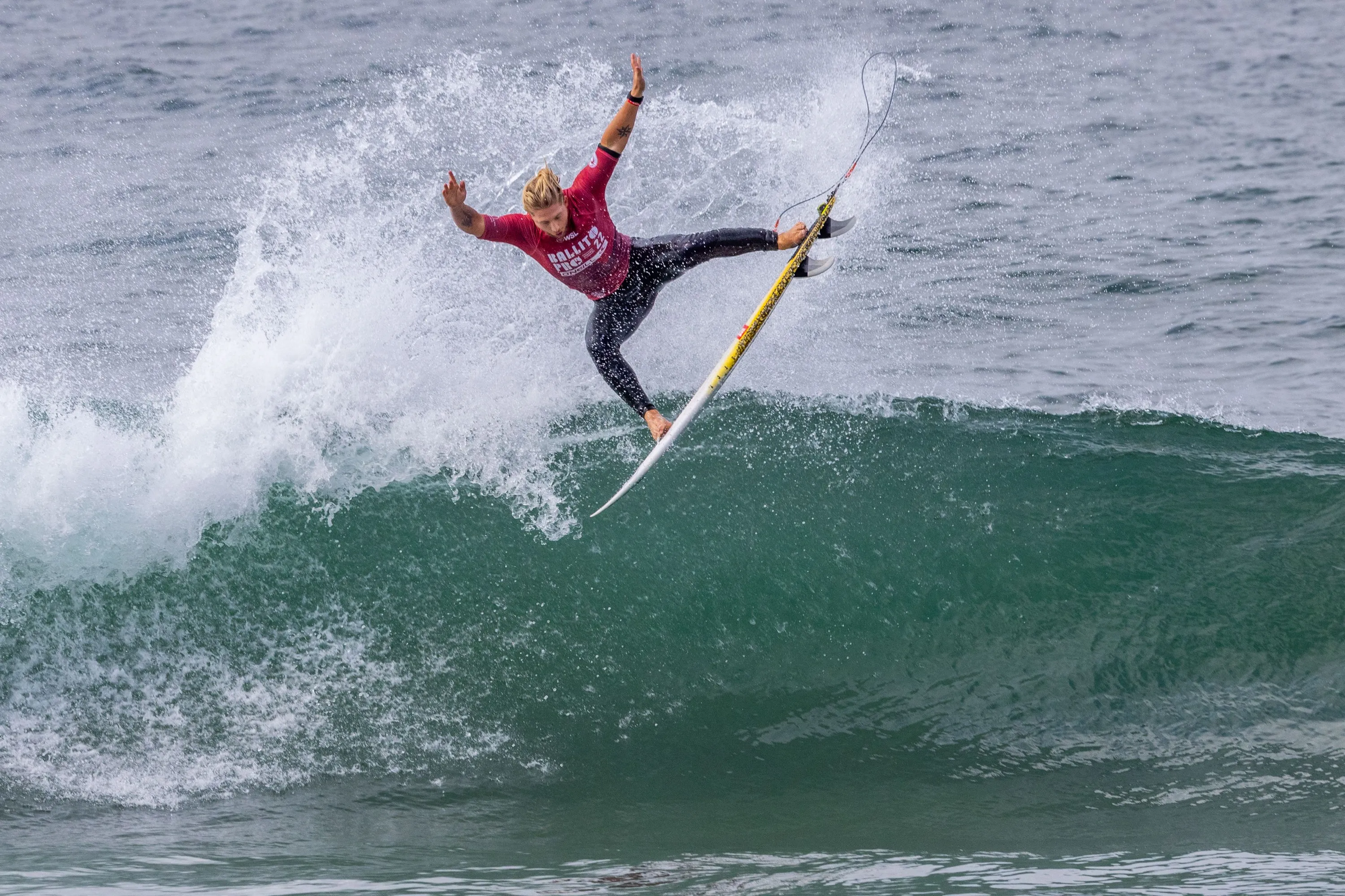 Timothee Bisso of France surfs in Heat 4 of the Round of 48 at the Ballito Pro Presented by O'Neill on July 6, 2022 at Ballito, KwaZulu-Natal, South Africa. (Photo by Nicolette Tostee/World Surf League via Getty Images)