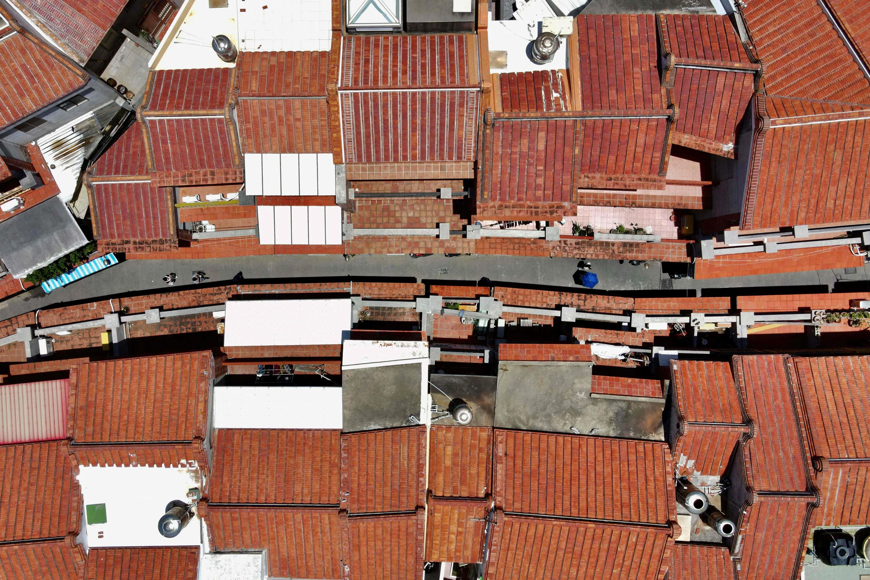 This aerial photo taken on May 30, 2022 shows people walking down a narrow lane in a local area in the town of Magong on the Penghu islands. In the sleepy fishing towns on the Penghu islands, many locals are sanguine despite the frequent – and noisy – reminders of the military threat by neighbouring China. (Photo by Sam Yeh/AFP Photo)