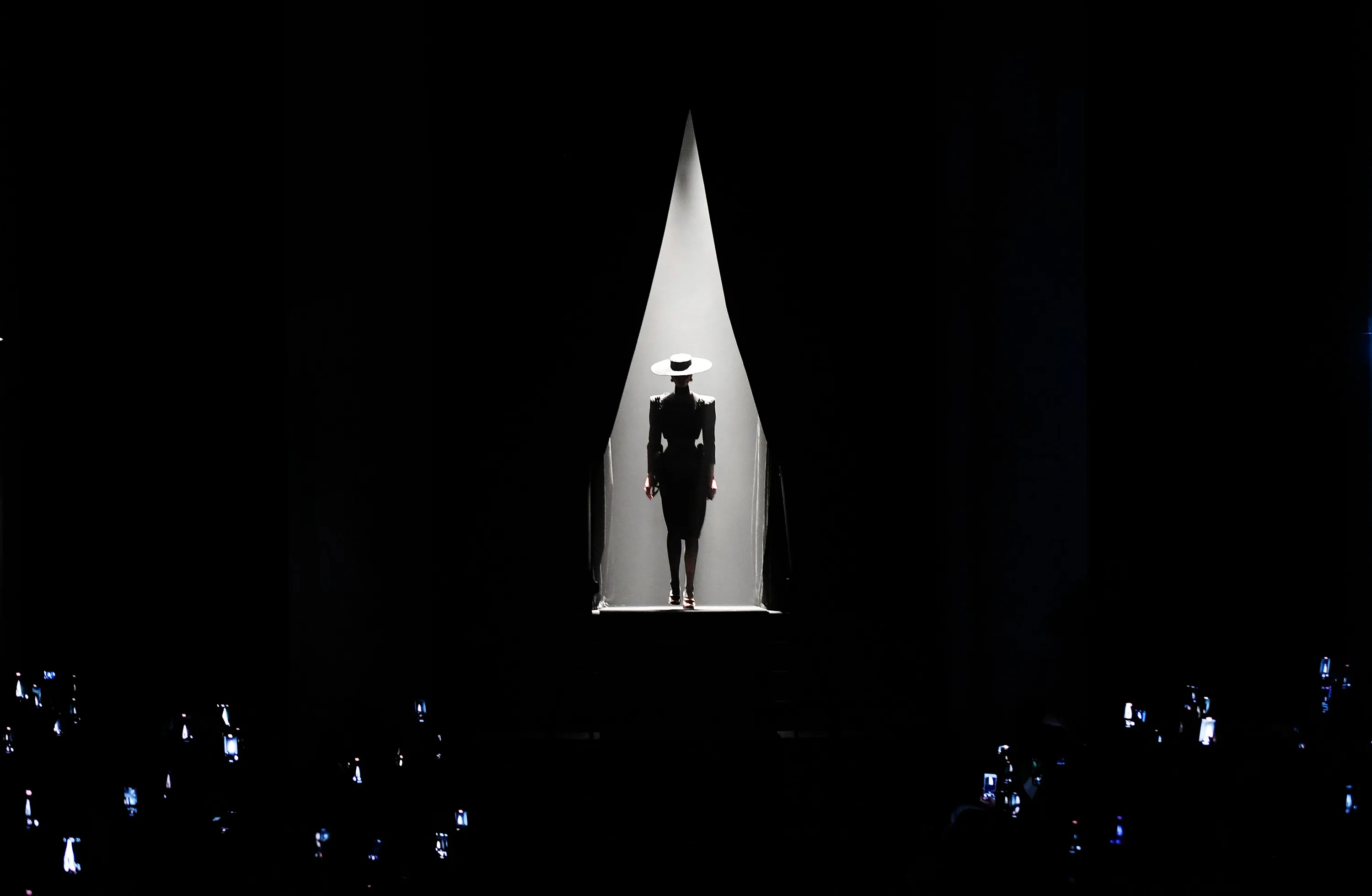 A model presents a creation for Schiaparelli during the Women's Haute Couture Spring-Summer 2023 Fashion Week in Paris on July 4, 2022. (Photo by Julien de Rosa/AFP Photo)