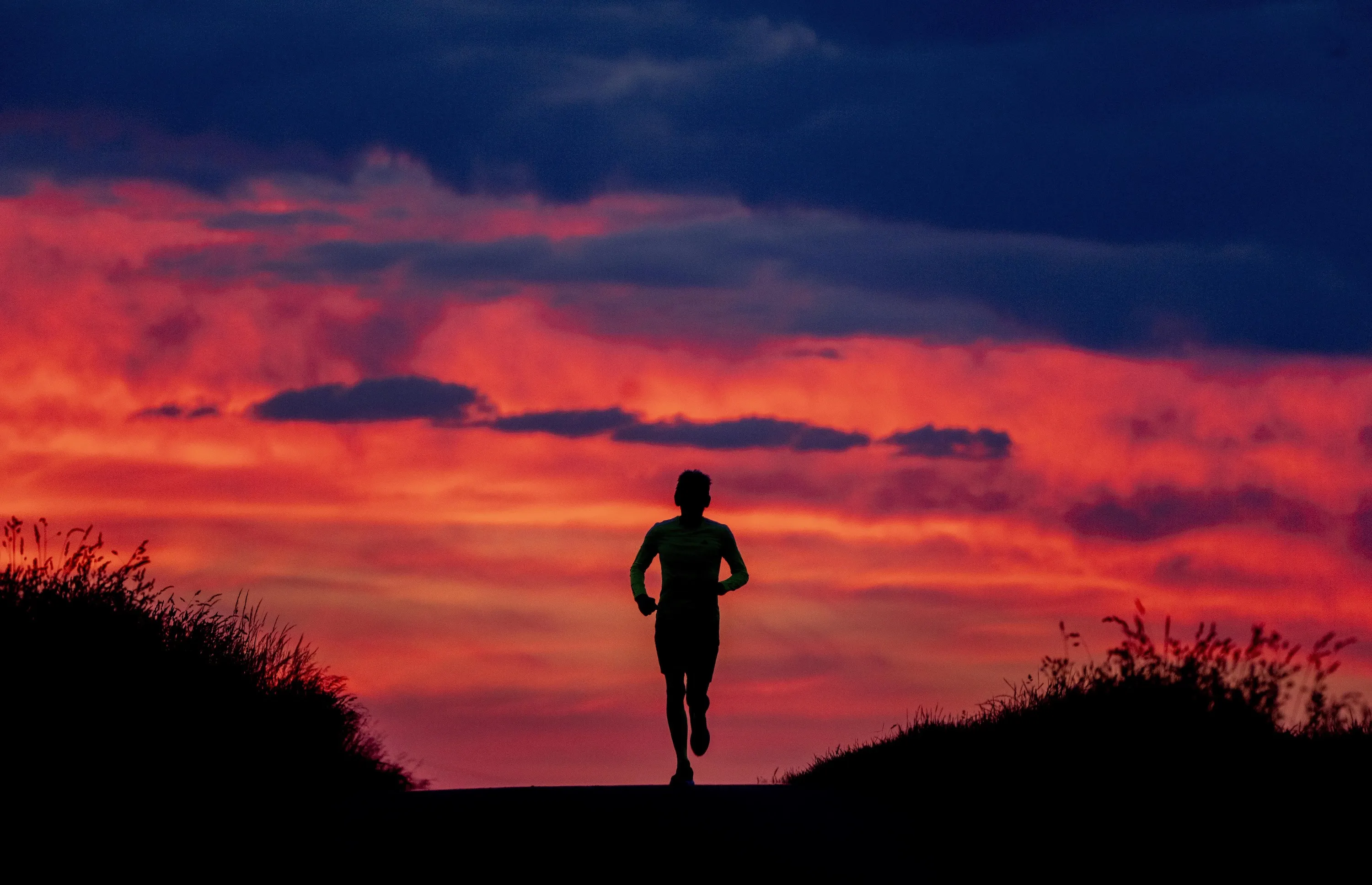 A man runs on a small road in the outskirts of Frankfurt, Germany, before sunrise on Tuesday, May 31, 2022. (Photo by Michael Probst/AP Photo)