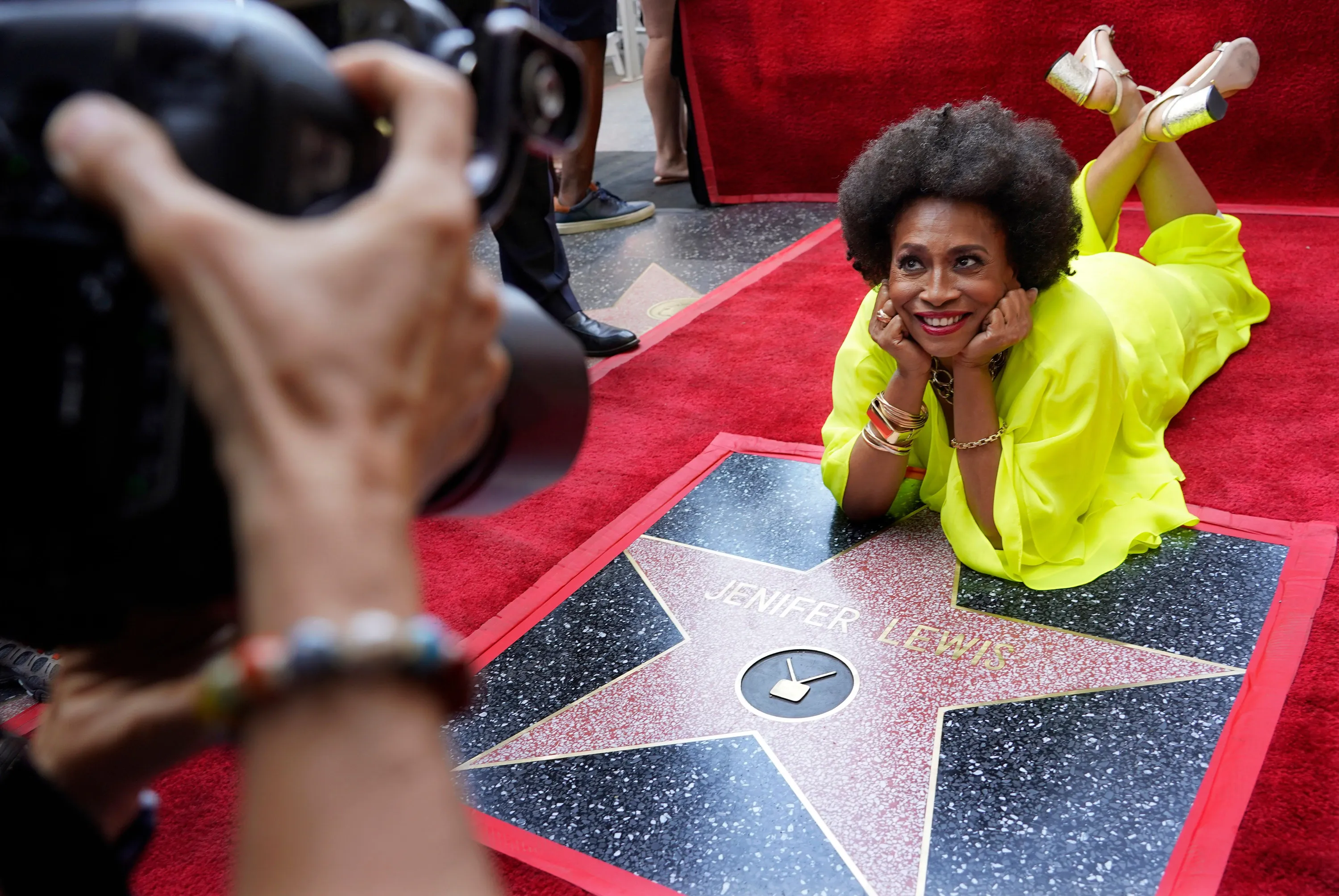 American actress Jenifer Lewis poses behind her new star on the Hollywood Walk of Fame following a ceremony for her, Friday, July 15, 2022, in Los Angeles. (Photo by Chris Pizzello/AP Photo)