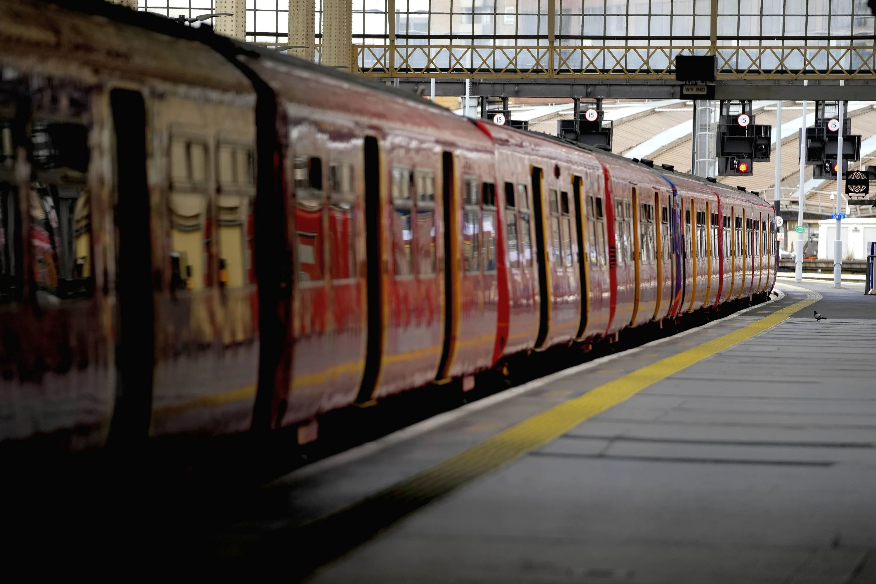 A train parks at an abandoned platform at Waterloo Station as members of the Rail, Maritime and Transport union (RMT) began fresh nationwide strikes in a bitter dispute over pay, jobs and conditions, in London, Wednesday, July 27, 2022. Train companies said only about a fifth of services across the country were due to run on Wednesday. (Photo by Frank Augstein/AP Photo)