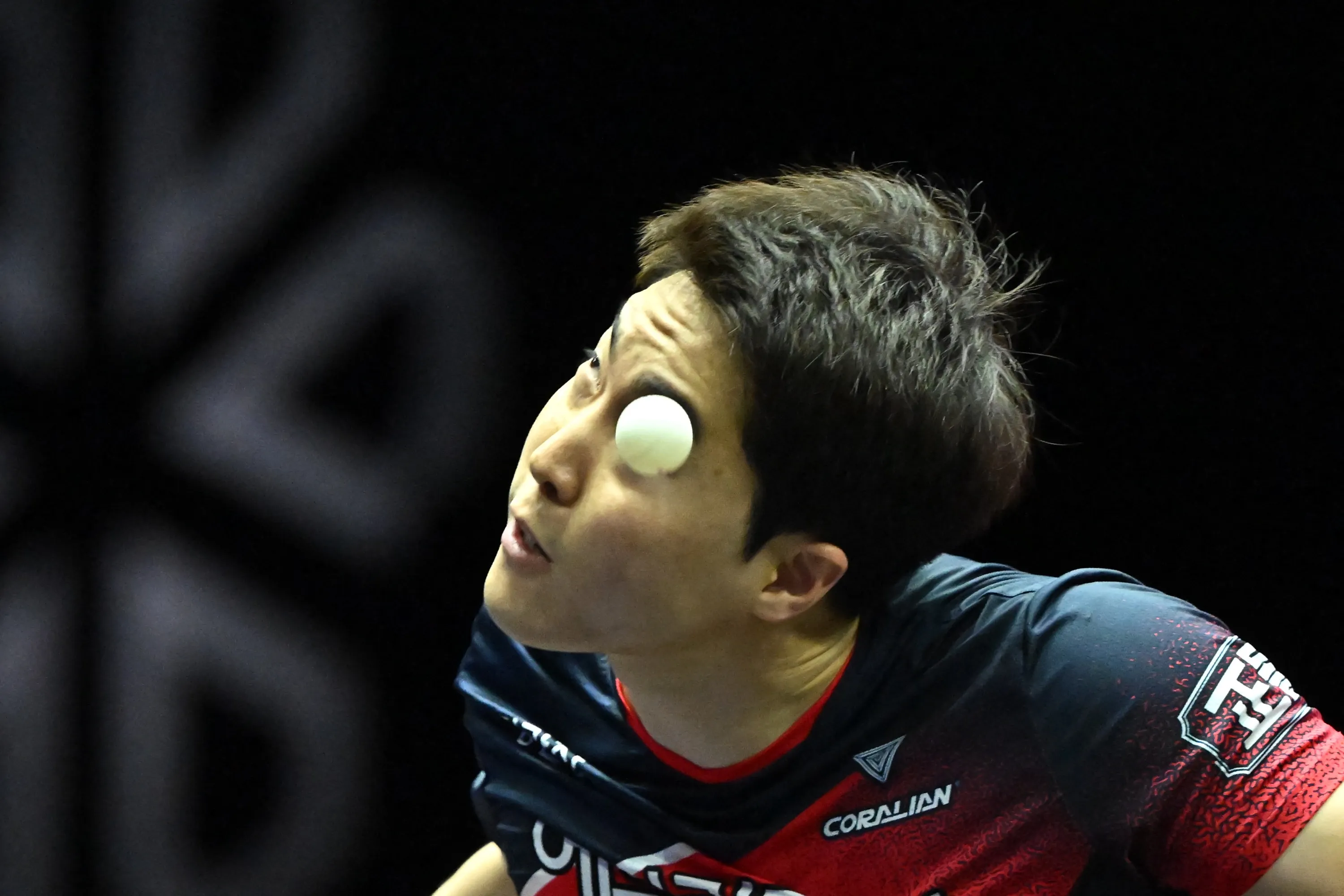 South Korea's Lim Jong-hoon competes against Japan's Harimoto Tomokazu (not in picture) during a men's quarterfinal match of the World Table Tennis Champions European Summer Series 2022 in Budapest, Hungary on July 21, 2022. (Photo by Attila Kisbenedek/AFP Photo)