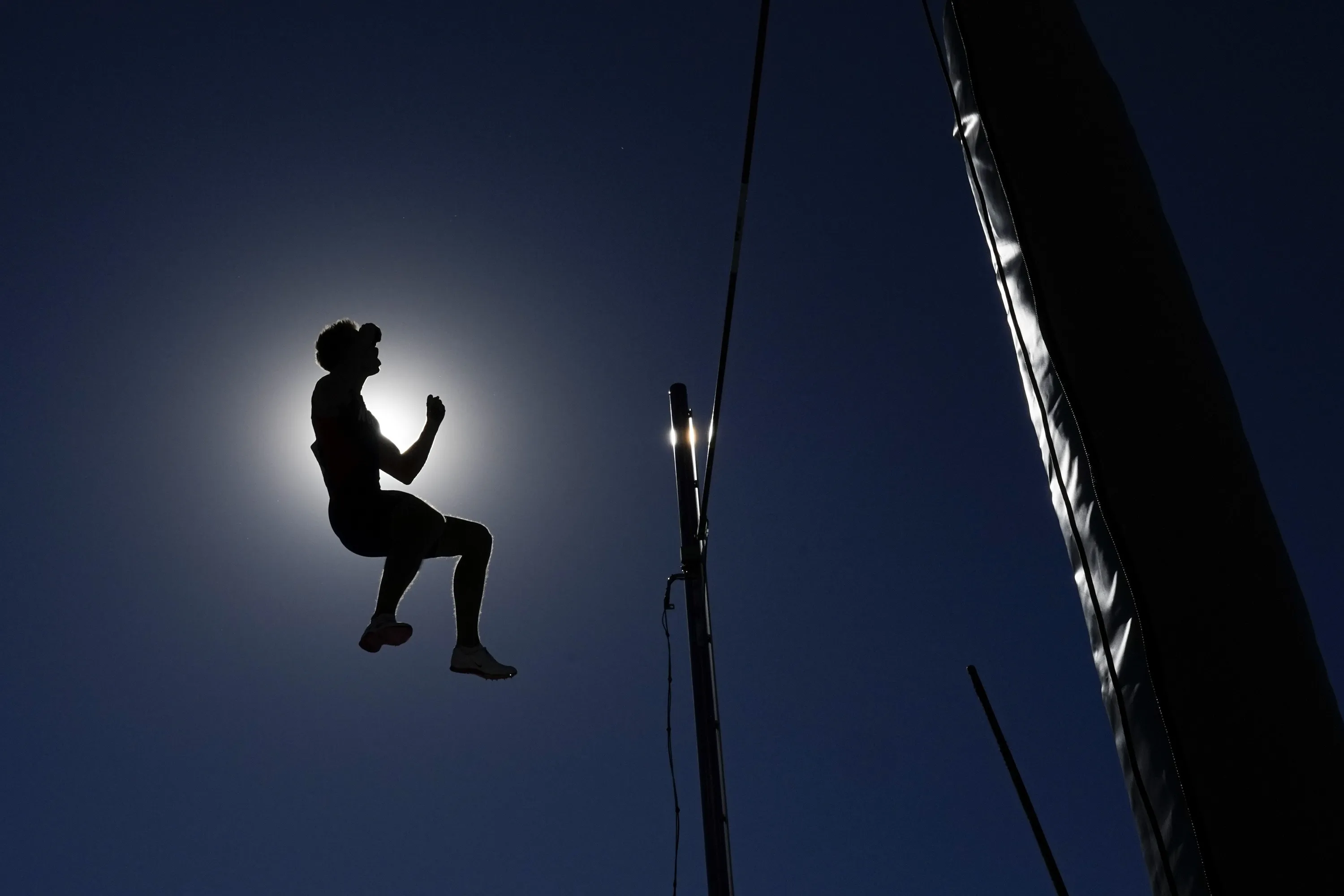 Simen Guttormsen, of Norway, competes in qualifications for the men's pole vault at the World Athletics Championships on Friday, July 22, 2022, in Eugene, Ore. (Photo by David J. Phillip/AP Photo)