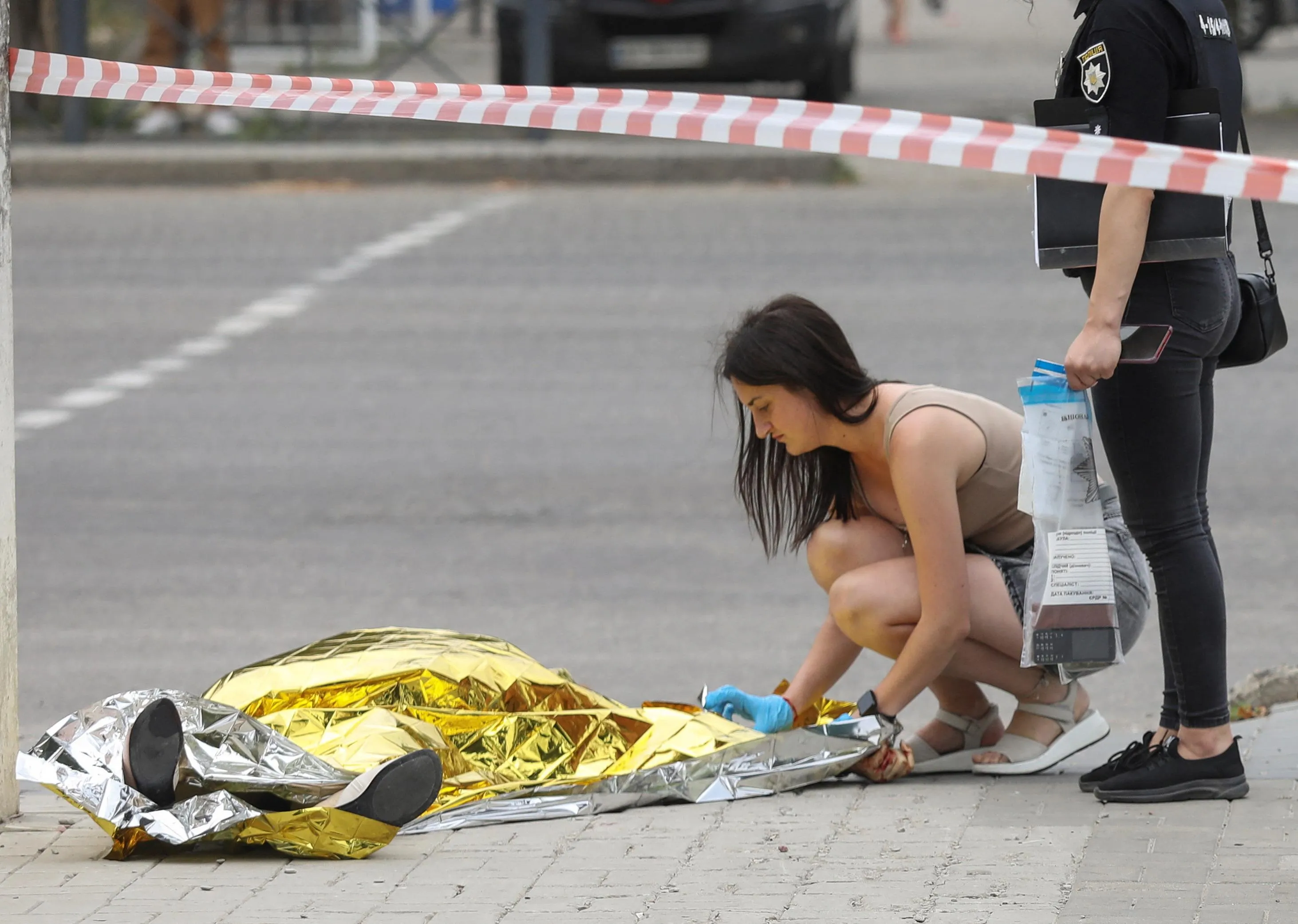 Police criminalists inspect the body of a person killed during a Russian military strike, as Russia's attack on Ukraine continues, in Mykolaiv, Ukraine on July 29, 2022. (Photo by Mykola Tymchenko/Reuters)