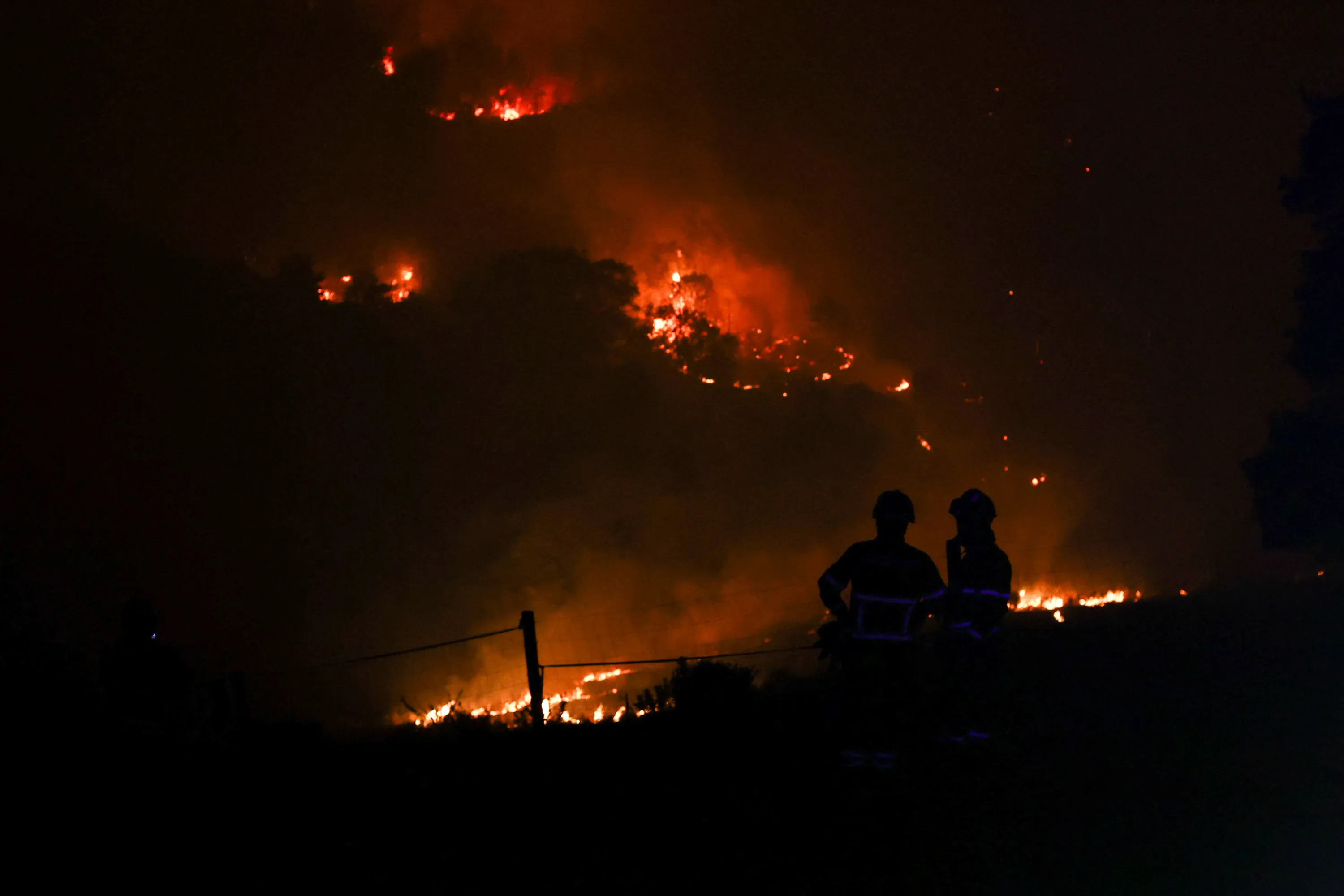 Firefighters patrol a burned area from a wildfire in Venda do Pinheiro in Mafra, Portugal, July 31, 2022. (Photo by Pedro Nunes/Reuters)