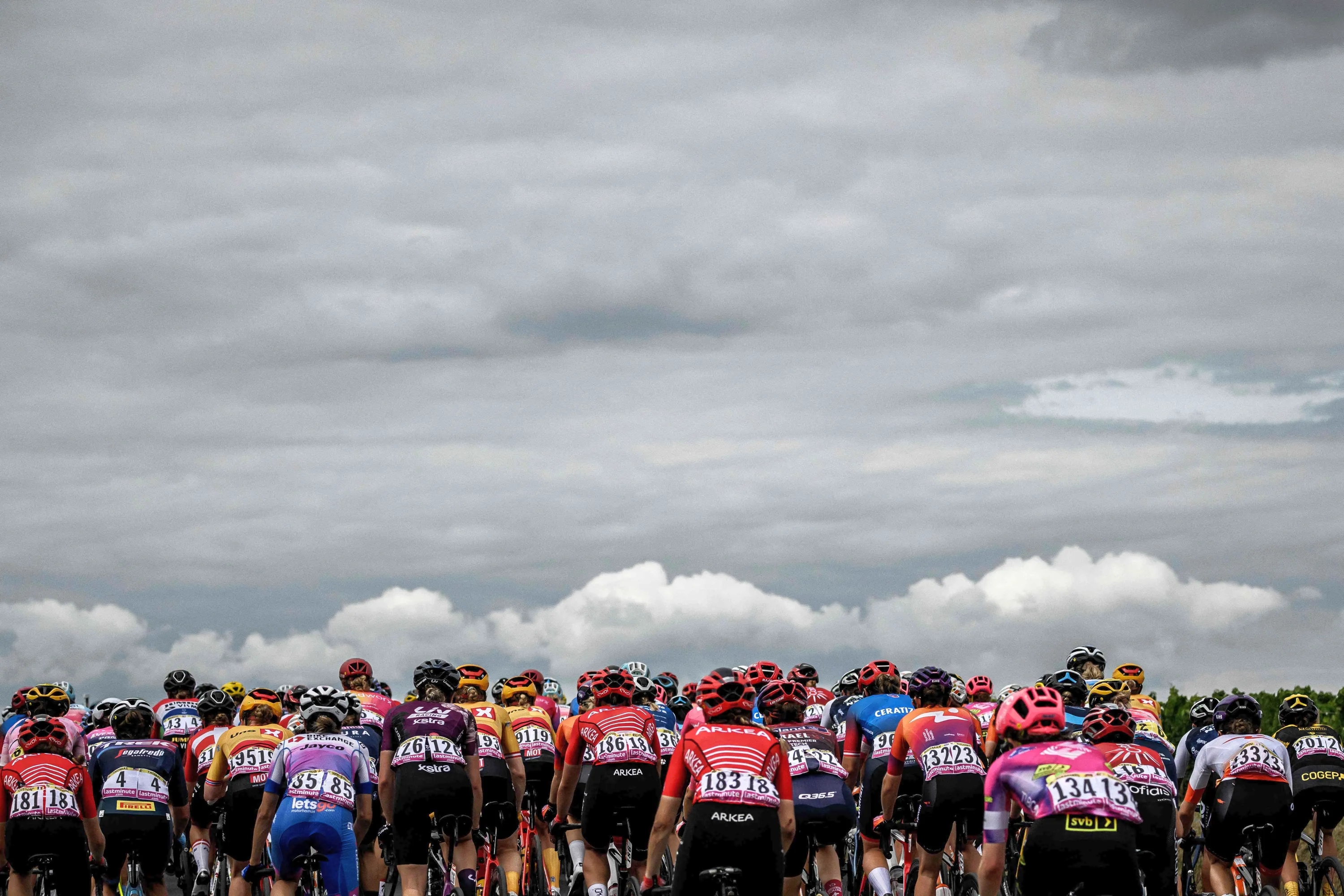 The pack rides during 3rd stage of the new edition of the Women's Tour de France cycling race, 133,6 km between Reims and Epernay on July 26, 2022. (Photo by Jeff Pachoud/AFP Photo)