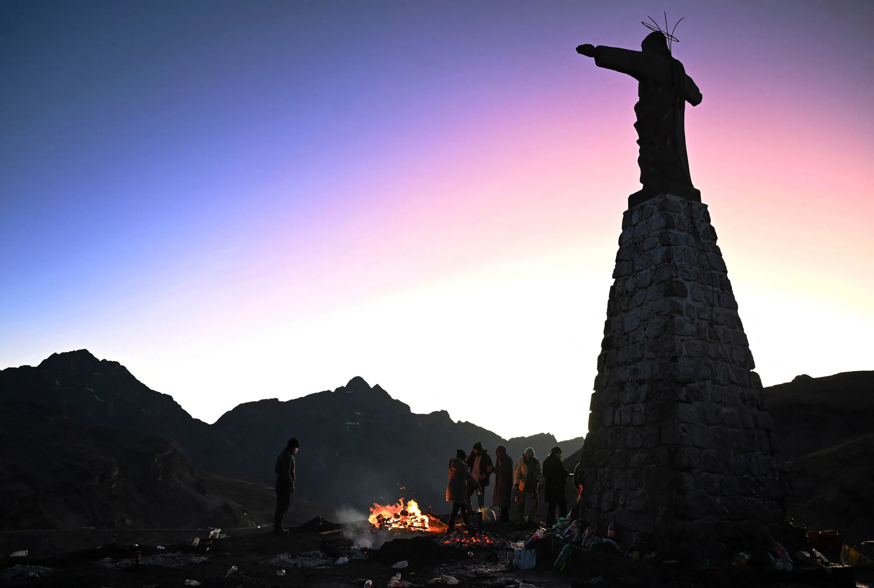 Andean indigenous people hold a ritual to thank the Pachamama goddess (Mother Earth) in La Cumbre, 25 km from La Paz, Bolivia on August 1, 2022. (Photo by Aizar Raldes/AFP Photo)