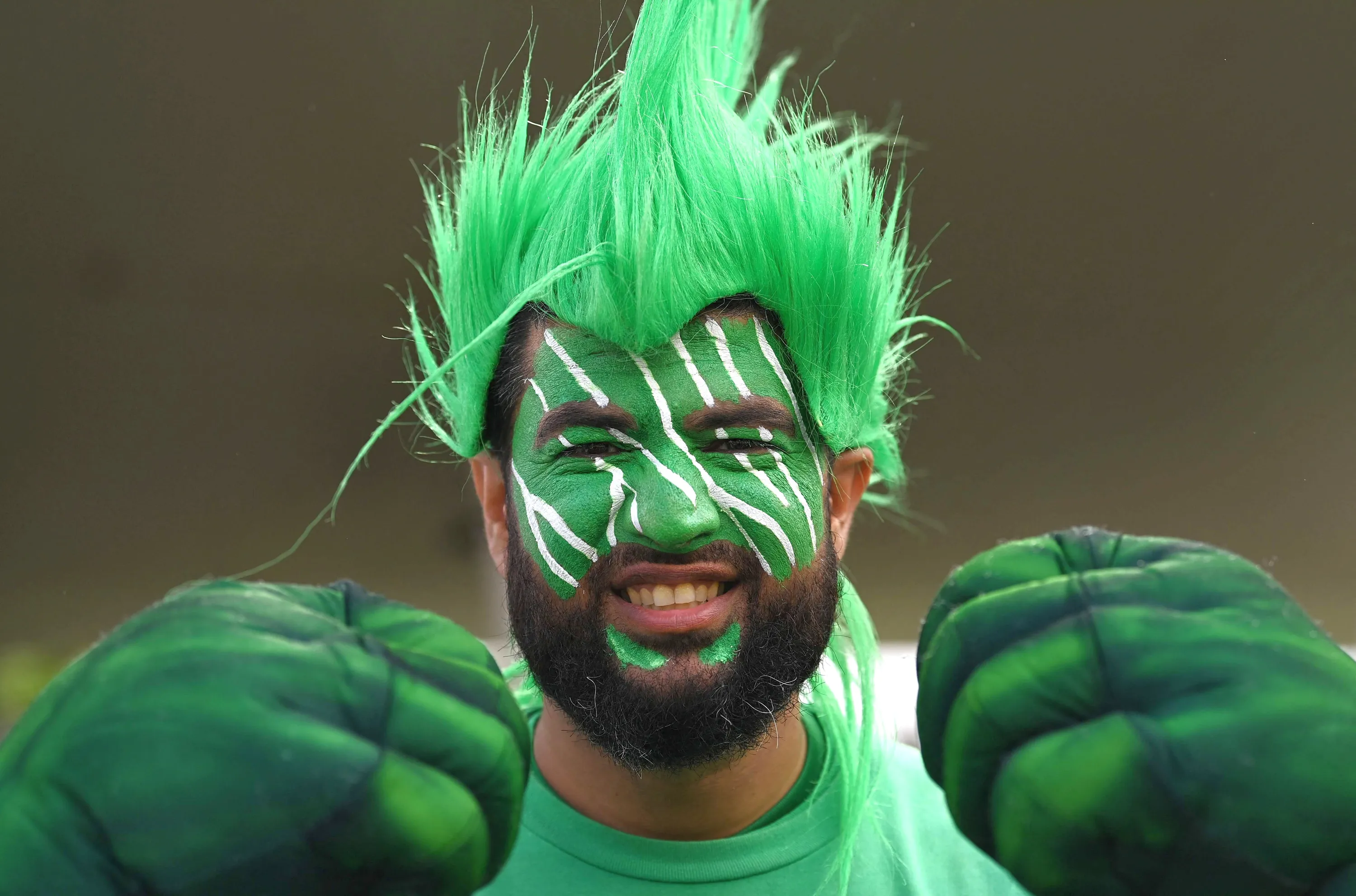 Pakistan supporters arrive for the Twenty 20 cricket match between India and Pakistan on day three of the Commonwealth Games at Edgbaston in Birmingham, central England, on July 31, 2022. (Photo by Glyn Kirk/AFP Photo)